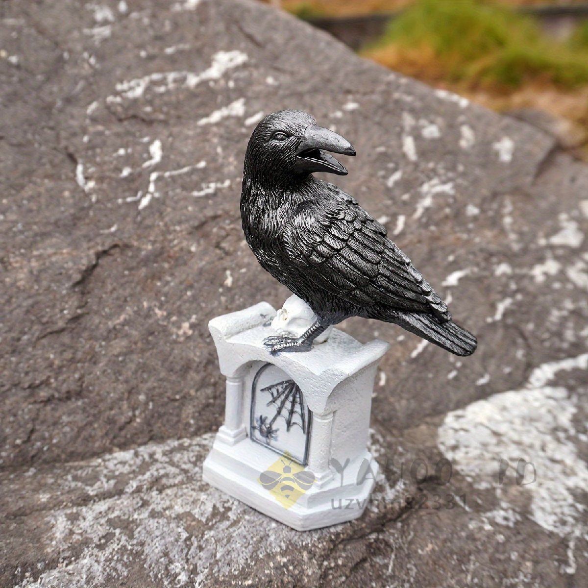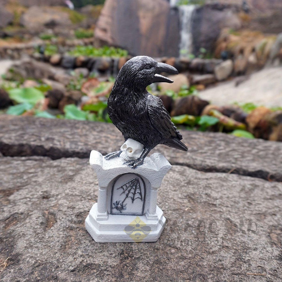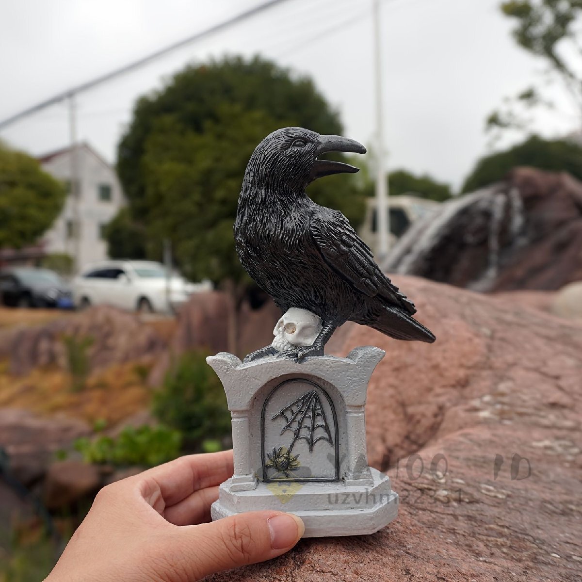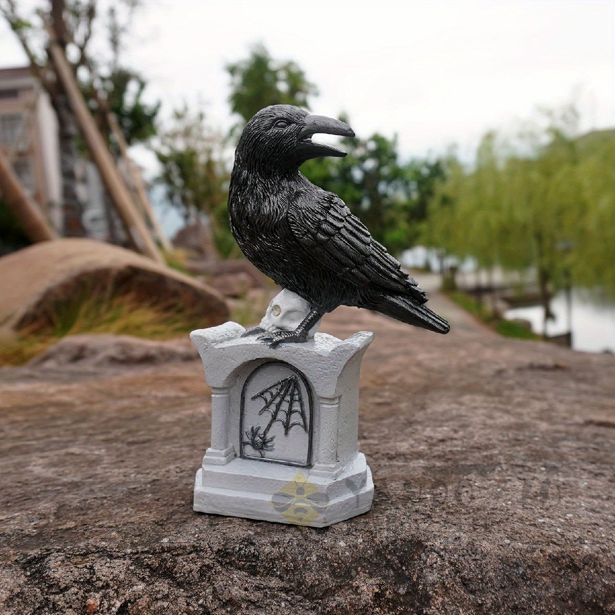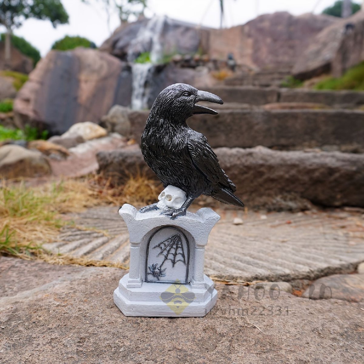 ユニークなガーデンオーナメント、墓の上に乗っているカラスの置物です。玄関やリビング、ダイニングなど、さまざまなインテリアにぴったりのデザインが魅力です。樹脂製のため軽量で耐久性も高く、屋外でも安心してお使いいただけます。ガーデニングの装飾としても最適で、庭を一層引き立てる存在になるでしょう。訪れる人々にインパクトを与え、楽しい空間を演出します。