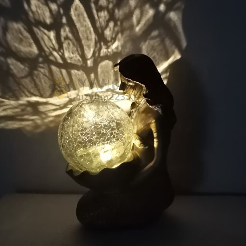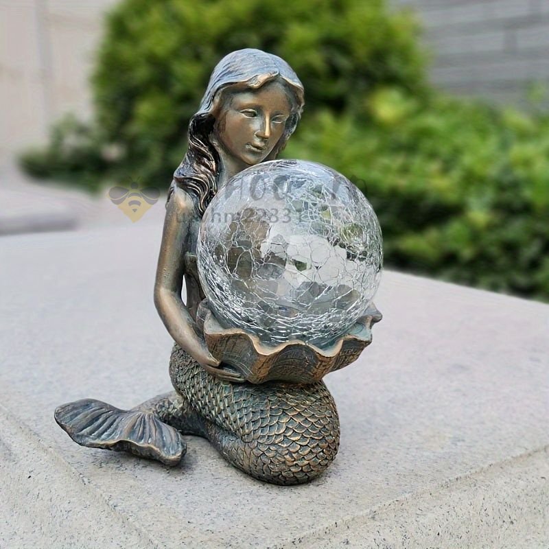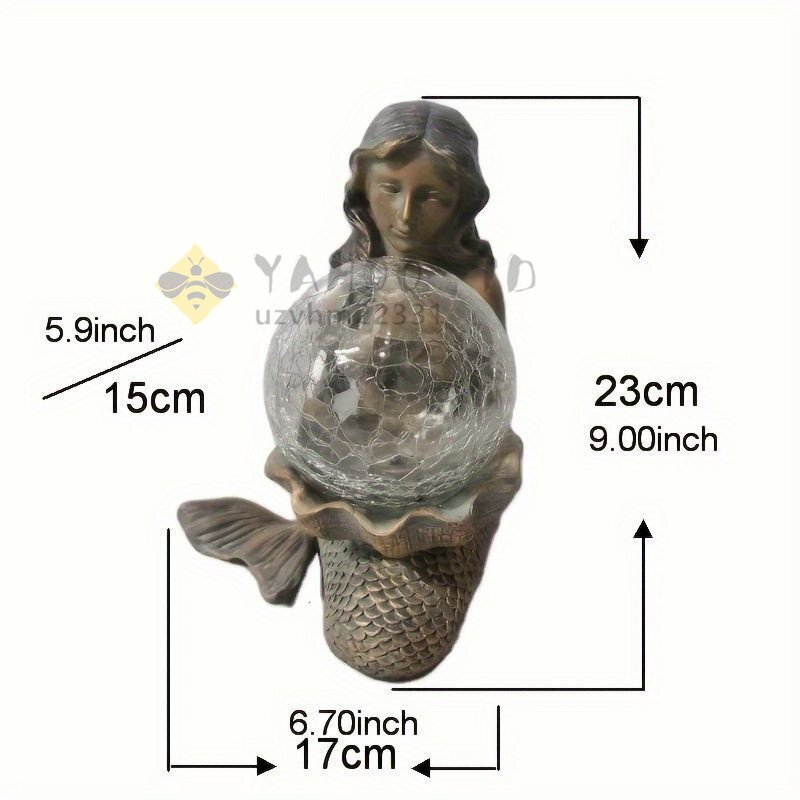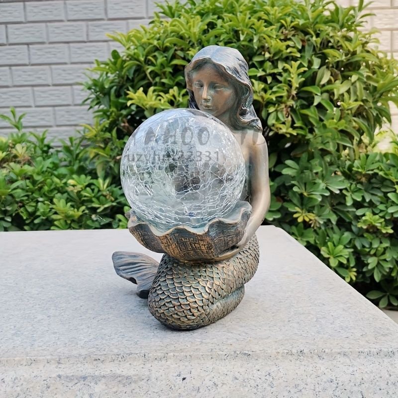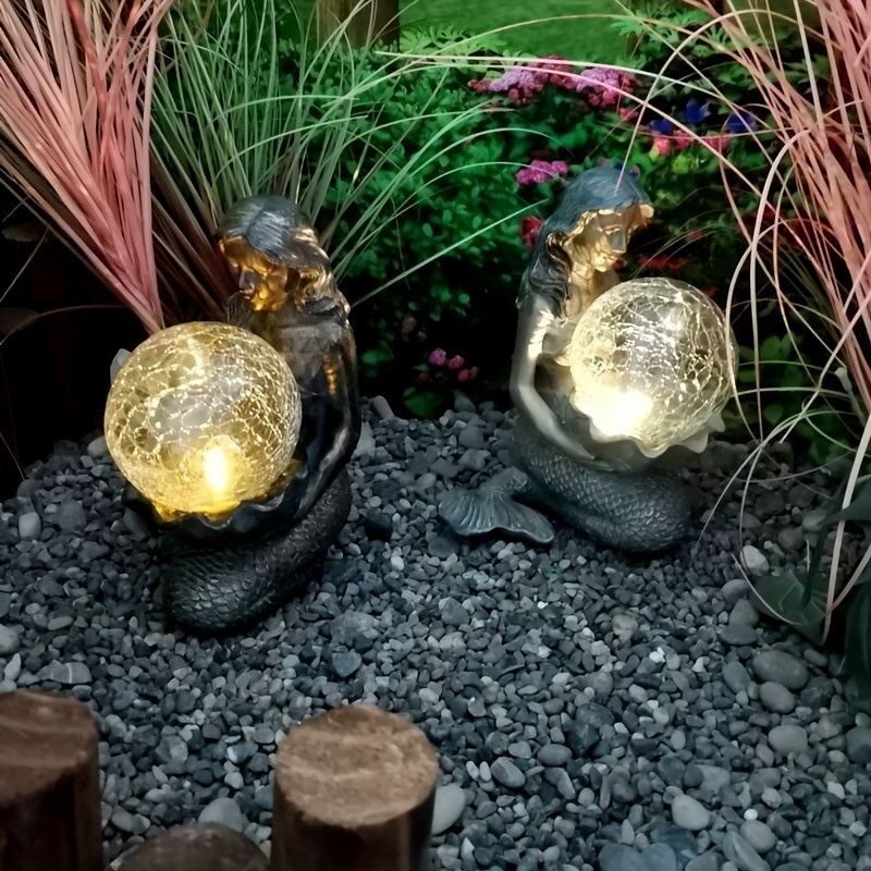 美しい人魚のデザインが魅力的なソーラーライト、ガーデンオーナメントで、あなたのお庭や玄関を華やかに演出します。太陽光を利用して自動的に点灯するこのライトは、電源の必要がなく、環境にも優しいアイテムです。樹脂製なので耐候性にも優れ、雨や風の中でも長持ちします。癒しを感じられる素敵なガーデニングアイテムとして、またインテリアとしても活躍します。