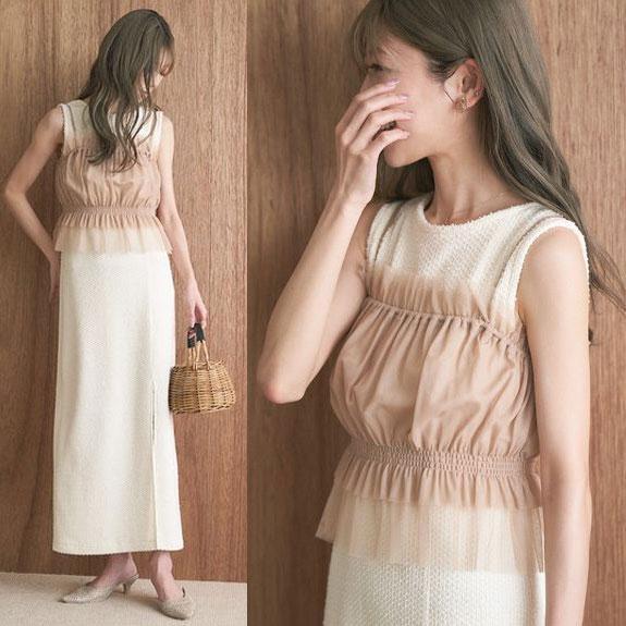 SNSで圧倒的支持を誇る、おしゃれな着こなしが話題の人気インフルエンサー kannaさんのこだわりをつめ込んだ、チュール素材のビスチェトップス。
