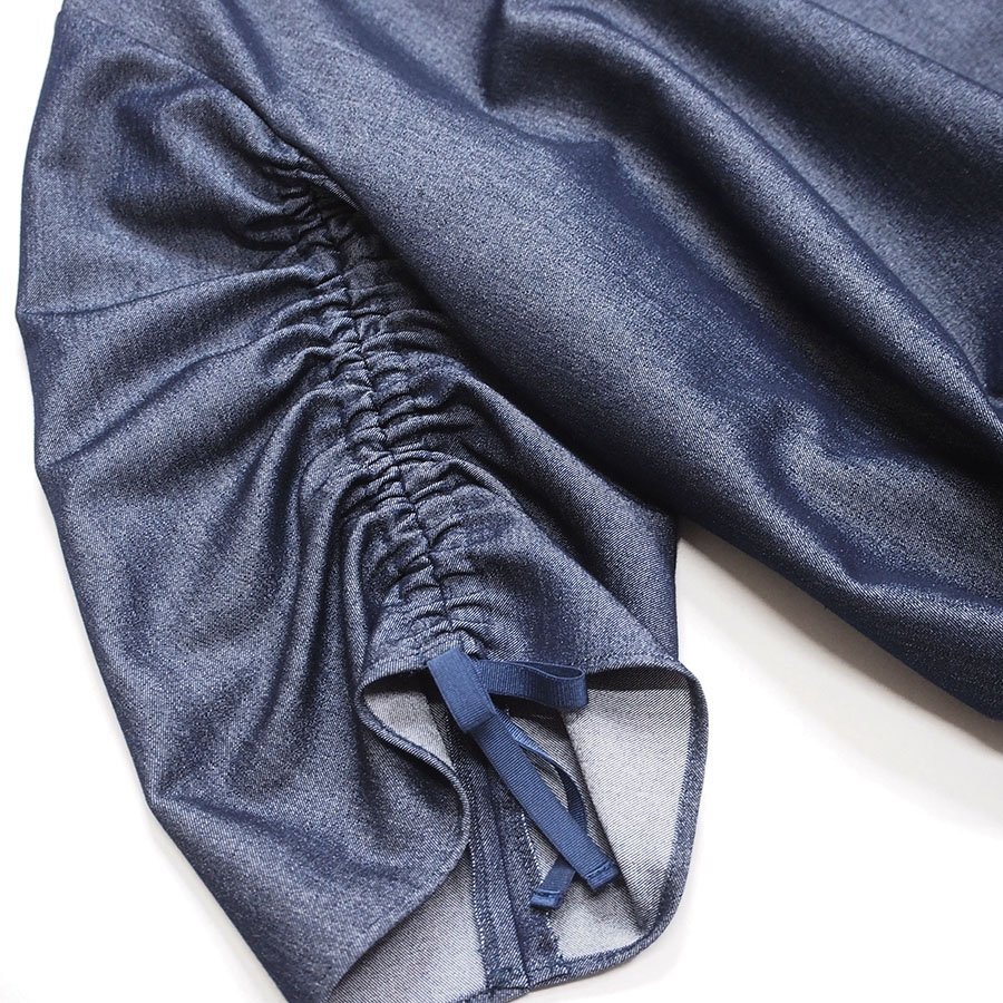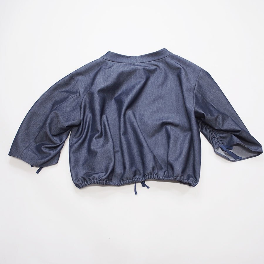 袖の内側と裾にゴムを通した丸みのあるシルエット。