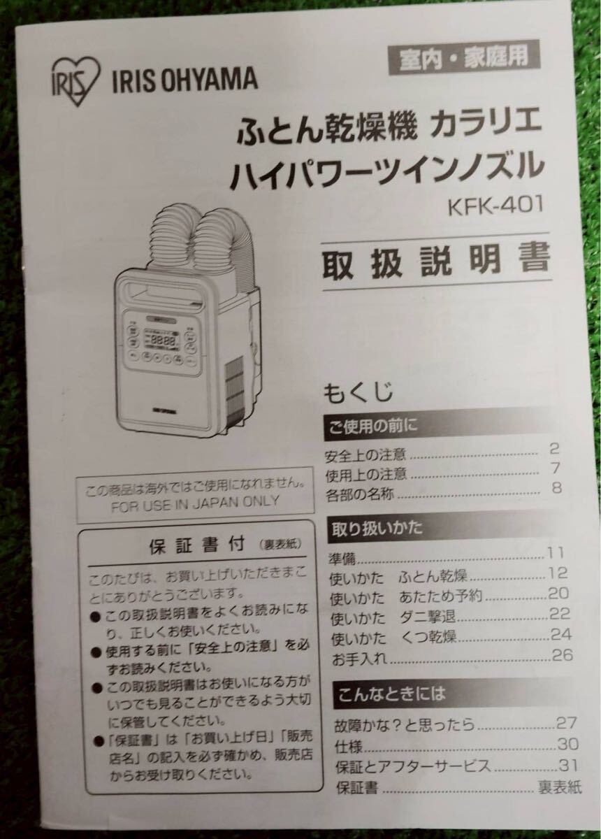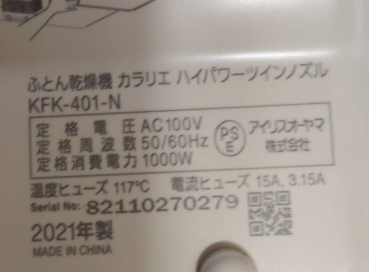| 商品詳細 | ◯G9866 アイリスオーヤマ IRIS OHYAMA ふとん乾燥機 KFK-401◯ |