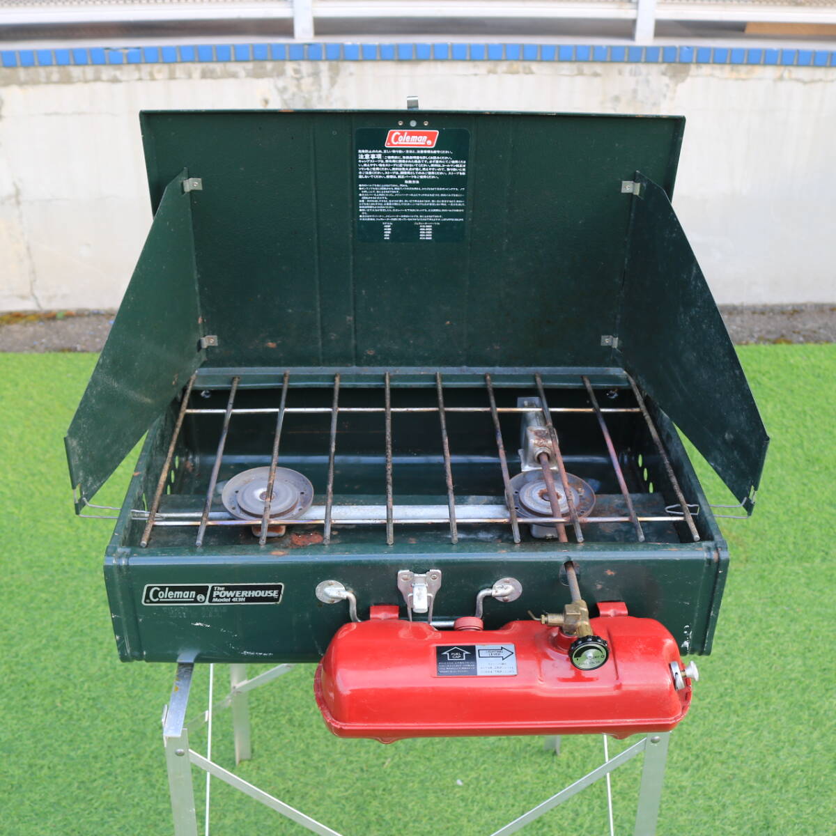 Coleman コールマン 413H パワーハウスツーバーナー ホワイトガソリン スタンド付き 着火確認済み 1990年10月製