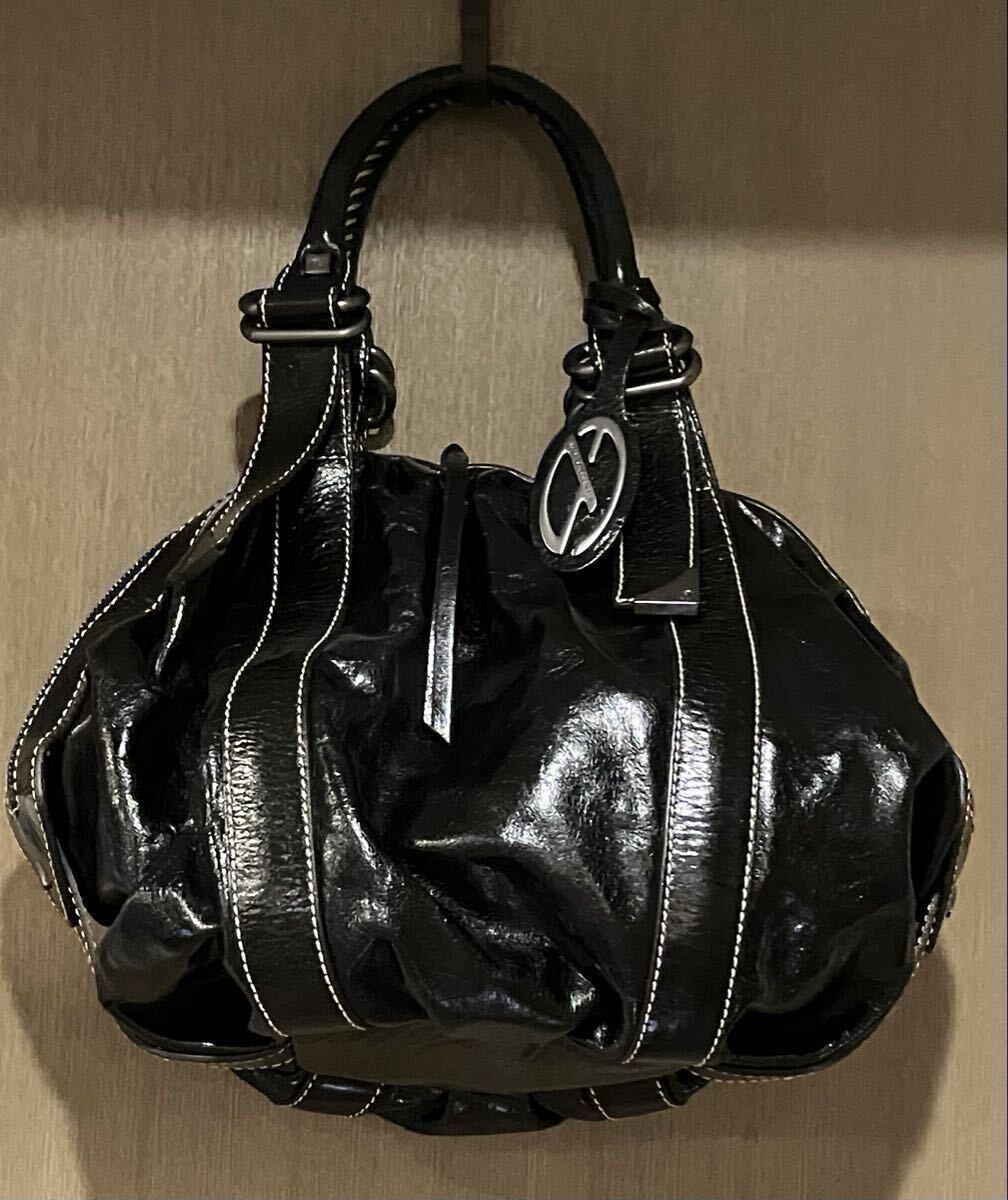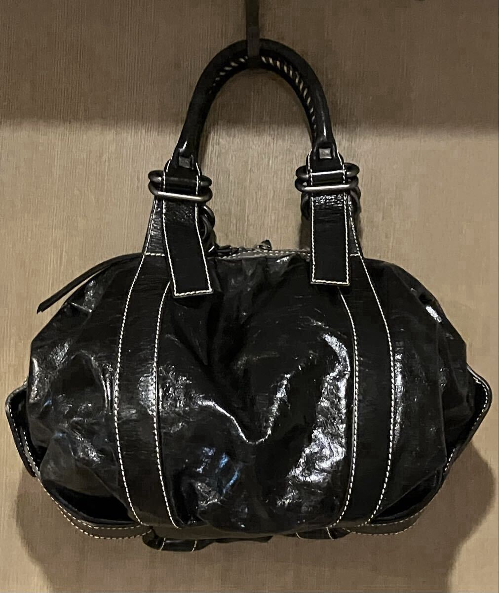 黒、縦25×横最大40×マチ12×ストラップから本体15(㎝)、多少の誤差はご了承下さい。
