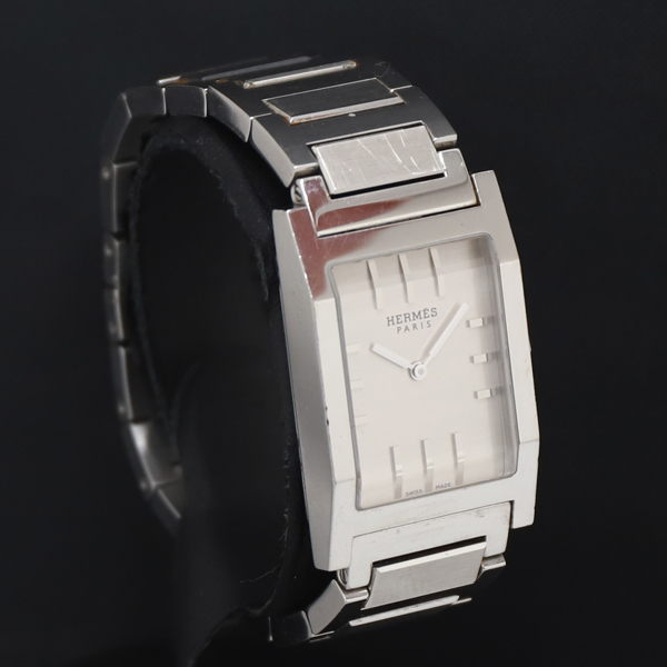 1円 稼働 良品 エルメス タンデム TA1.710 QZ シルバー文字盤 メンズ腕時計 0277200 8NBT KRK
