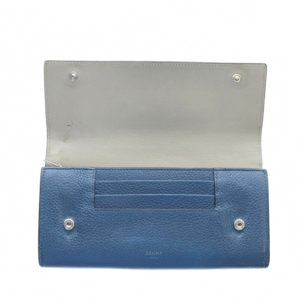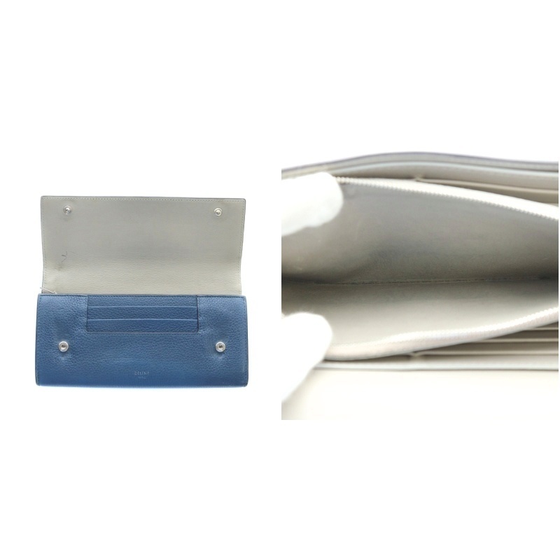 セリーヌ CELINE 長財布 二つ折り ラージフラップ 小銭入れ レザー 青 水色 /RI ■OS メンズ レディース