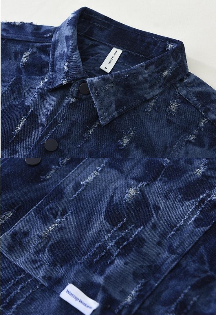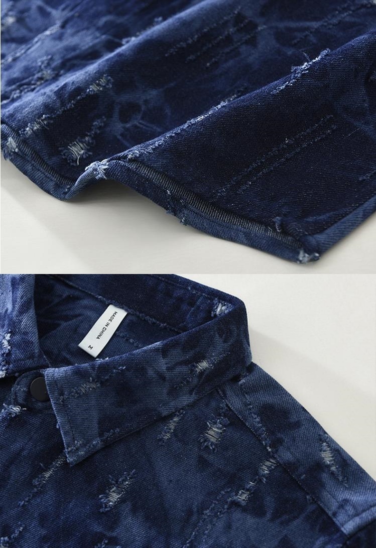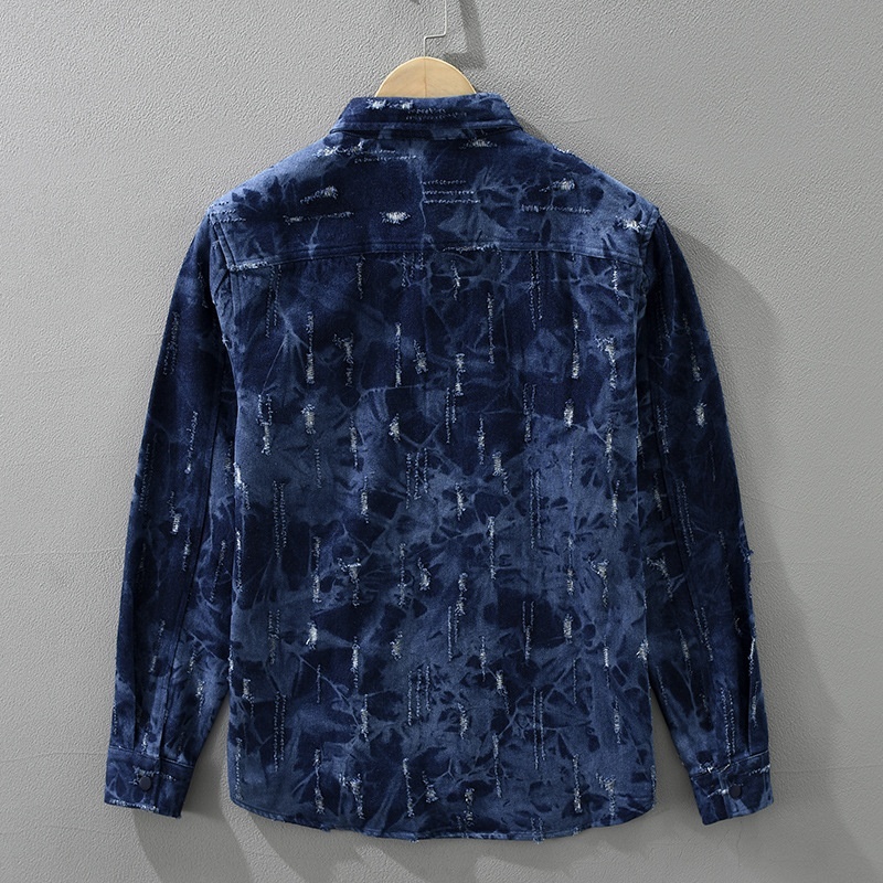 デニムシャツ シャツジャケット デニム長袖シャツ 新品★メンズ ダメージ加工 トップス ウエスタンシャツ 春秋服 カジュアルシャツ【M7677】ブルー L