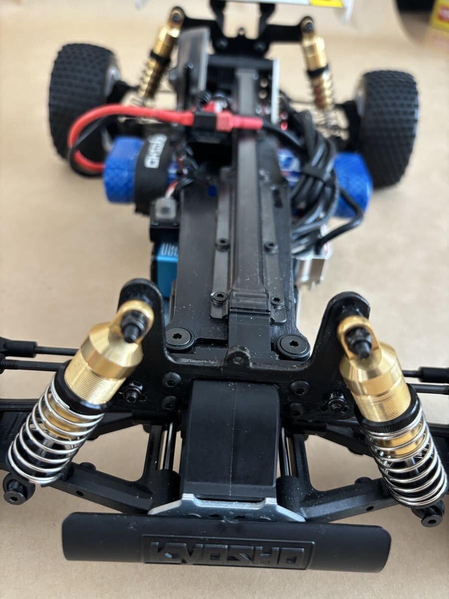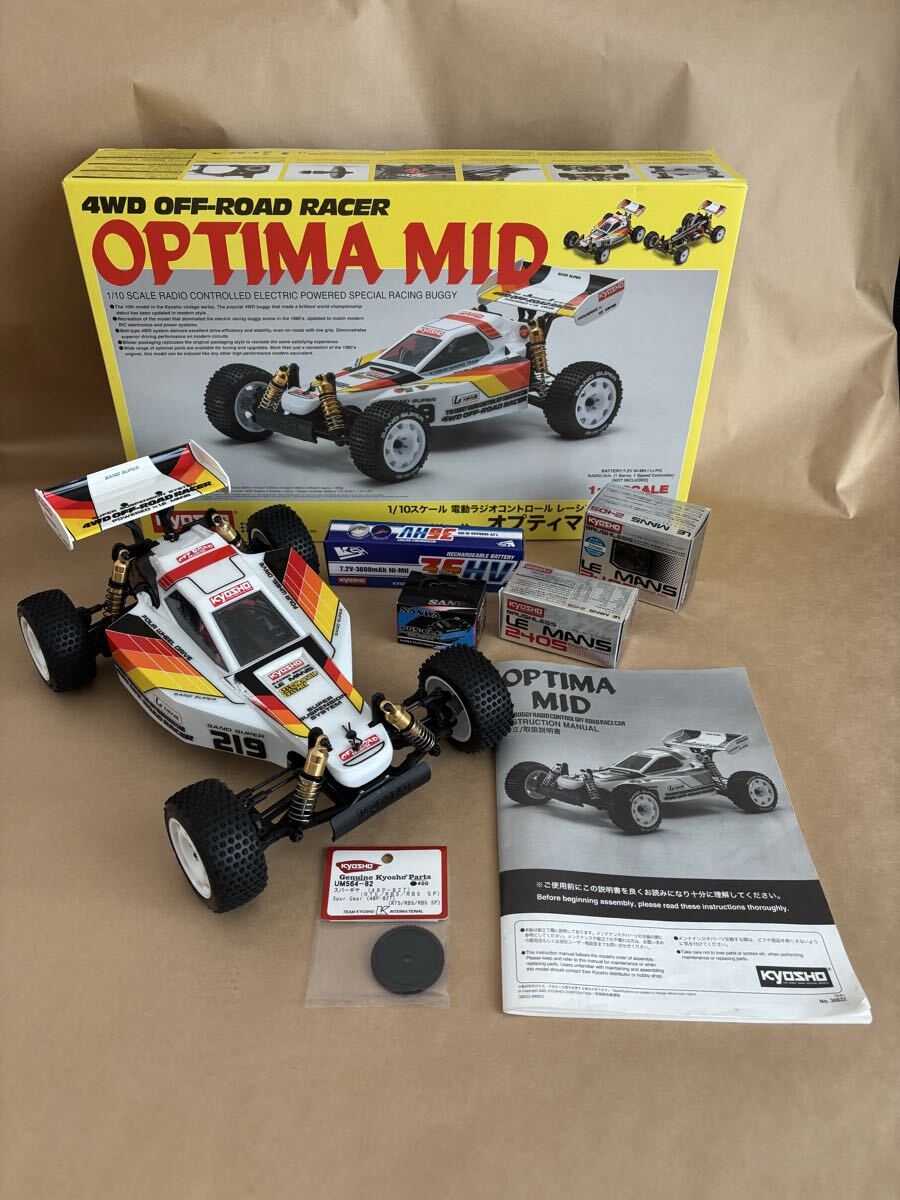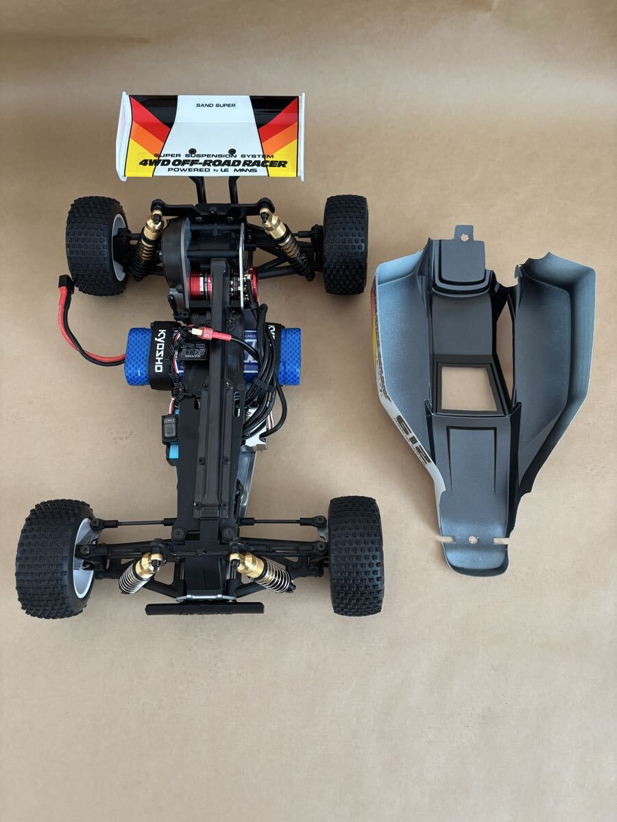 約2年前ショップにて新品で購入し当方(素人)が組み立て塗装、数メートルテスト走行したほぼ新品のメカ付 京商 4WD オフロード ビンテージ バギーオプティマ ミッド です。