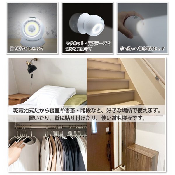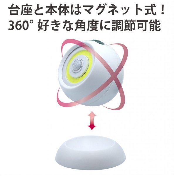 人感センサーライト COB 懐中電灯 360度 角度調整 壁掛け ライト 電池 台座 マグネット式 防災 送料無料 150T◇ 丸型360度ライト:ホワイト