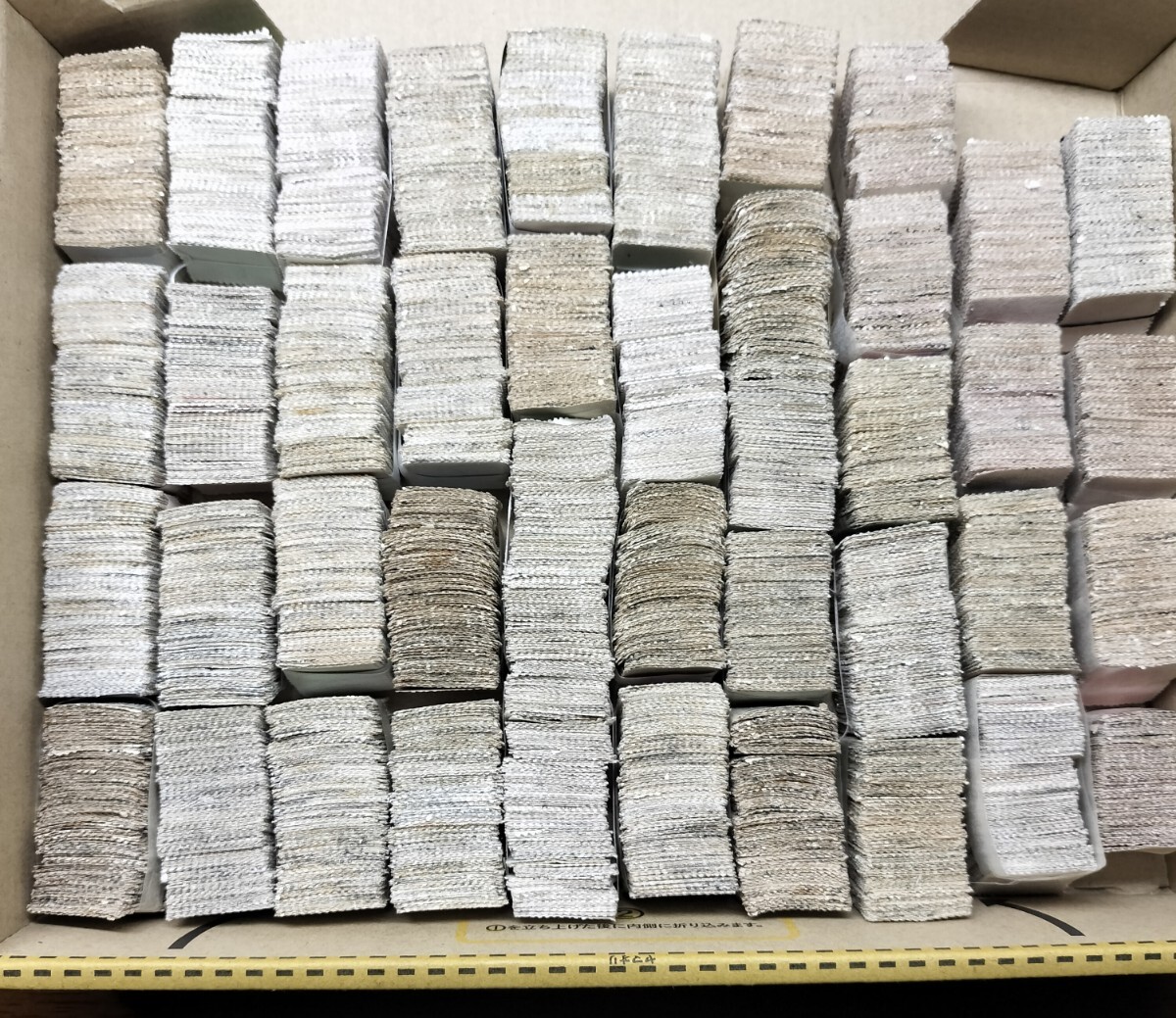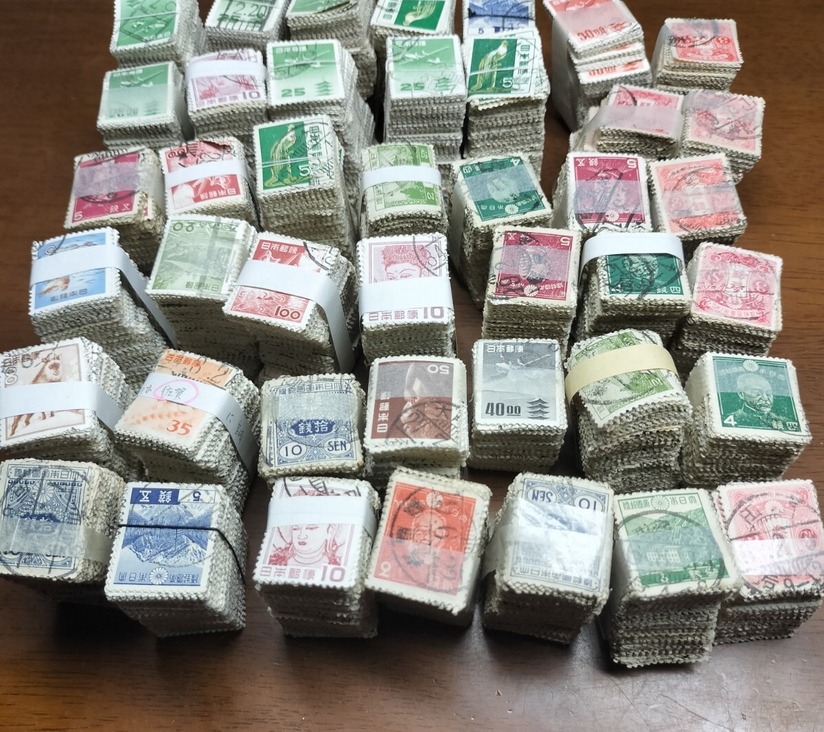 収集家の方が、種類ごとに整理したものです。かなり前から集めておりましたので、流通していないものかと思われます。一束、概ね450枚前後〜500枚の間だと思います。目打、用紙、透かし、エラー、印刷等はまったく点検しておりませんので、お宝が出てくるかもしれませんが、消印ものはないとのことです。その他ご不明な点は、質問欄より承ります。発送は郵パケットを使用いたします。その他の発送も承ります。落札品が複数の場合は、同封して発送いたします。またお取り置きをご希望の方は、ご連絡いただければ一週間程度まで対応させて頂きますので、ご入札の方よろしくお願いいたします。