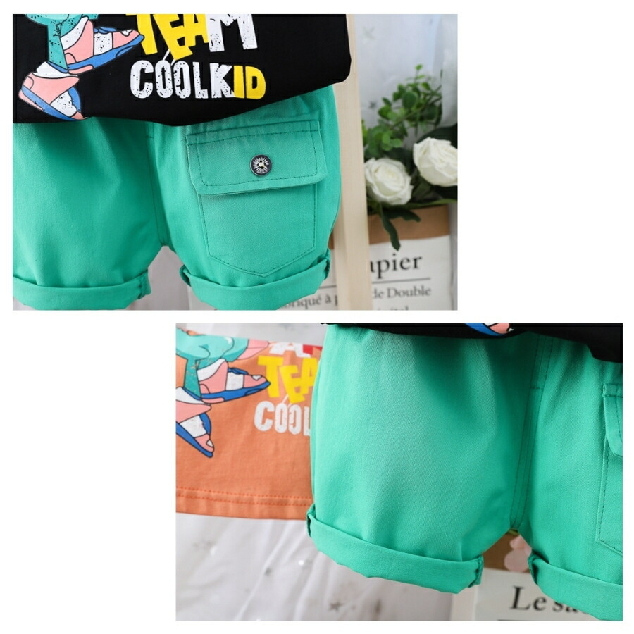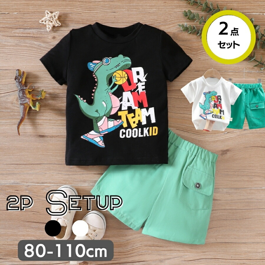商品名 | ブラック 90cm 2点セット セットアップ 上下セット Tシャツ 短パン 半ズボン ショートパンツ 半袖 男の子 キッズ ベビー服 春夏 80cm 90cm 100cm 110cm |