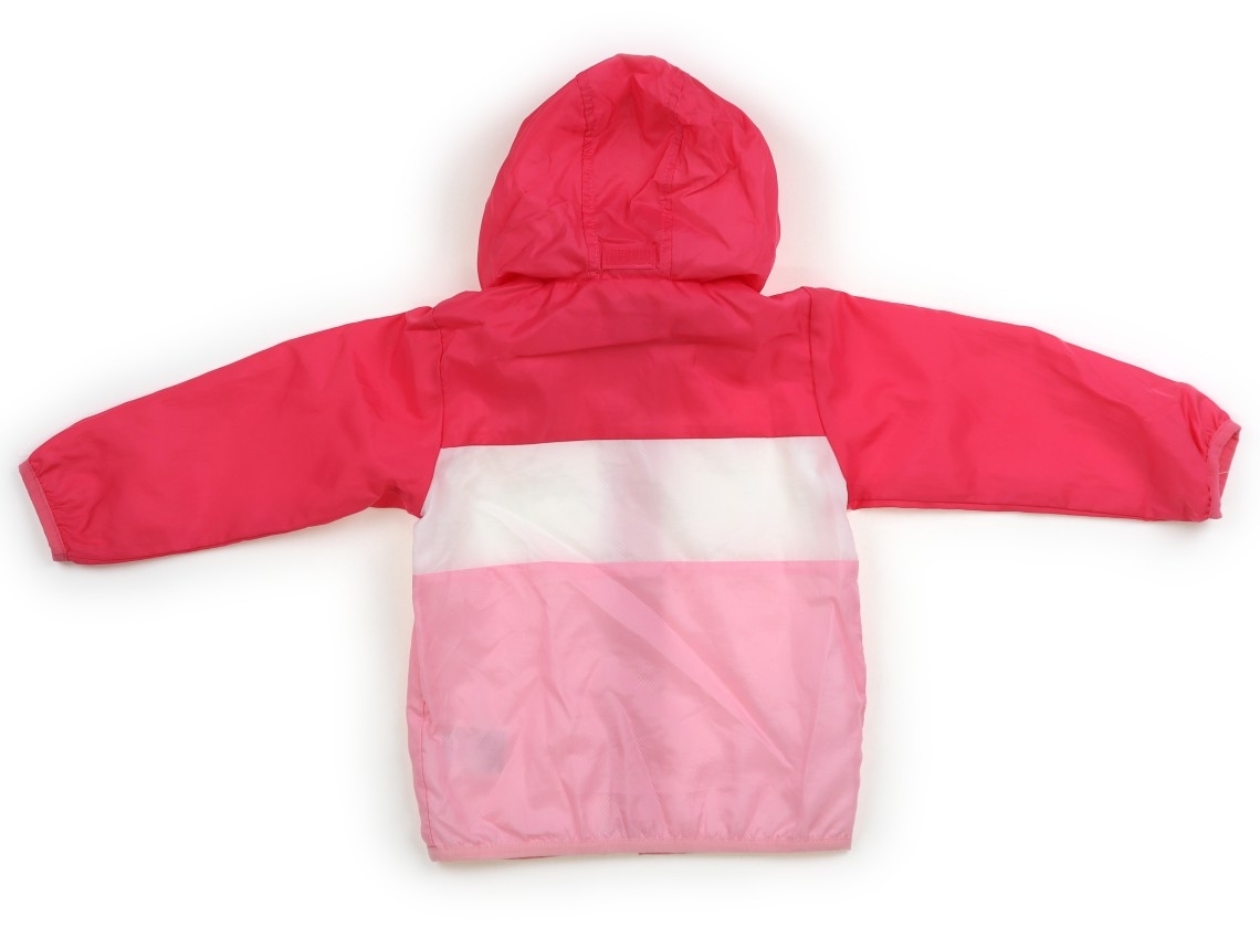 ポリエステル素材・裏メッシュ素材です。フードは襟に収納できるデザインです。目立つ汚れはありません。まだお使いいただけそうです。