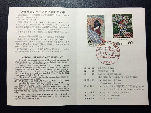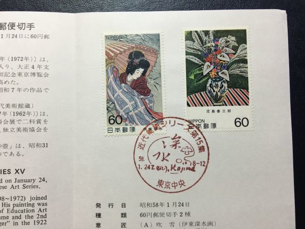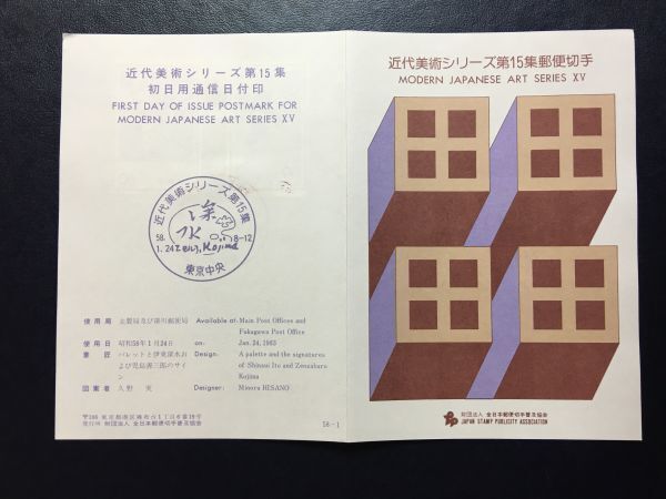 309希少1983全日本郵便切手普及協会記念切手解説書近代美術シリーズ第15集2種東京中央58.1.24FDC初日記念カバー使用済消印初日印記念印特印
