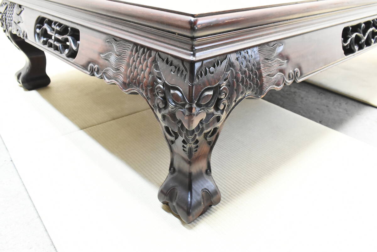 高級唐木/紫檀/獅子/龍/彫刻/透し彫り/浮き彫り/アート/ローテーブル/センターテーブル/リビングテーブル/シタン/重厚な/格調高いの出品になります。 その他画像にあるものはイメージとして用いたもので付属品ではございません。 コンディション 全体的に経年と使用による傷・汚れ等がございます。 傷、擦れなど画像にてご確認下さい。 画像にてご確認下さい。 現状でのお渡しとなります。 状態は画像をよくご確認のうえご判断ください。 画像に写っているものが全てです。 画像は複数ある汚れのうちの目立つ部分を抜粋して掲載しております。 撮影状況や光の加減で画像の色合いが現物と異なる場合があります。 状態は画像をよくご確認のうえご判断ください。 ご購入前の質問には出来るだけお答え致しますが、ご購入後の返品はお受け出来かねます。 ご購入は慎重にお願い致します。 ご購入の際はプロフィールをご確認ください。 上記の点にご理解いただける方のご入札をお願いいたします。 サイズ W×D×H:約149×89×36cm 多少の誤差はご了承下さい。 自社商品評価 C 評価判断基準 ・S 新品。若しくは未使用品。 ・A+ 新品同様品。傷や使用感がほとんどなく、非常に綺麗な状態。 ・A 美品。小さな傷などはあるが気になるレベルではなく、綺麗な状態 ・B 良品。傷や汚れなど若干の使用感はあるが、大きな痛みがない状態 ・C 中古品。使用上の問題はないが、気になる傷や汚れなど痛みがある状態 ・D ジャンク品。使用の上で問題がある状態。コンディション欄コメントを参照 ※上記評価は弊社規定にて判断させて頂いたものになります。商品画像、説明文に出来る限り状態を記載させて頂きますのでよくご閲覧頂いた上、自社商品評価はあくまでも参考としてご判断頂けますようお願い申し上げます。 |
