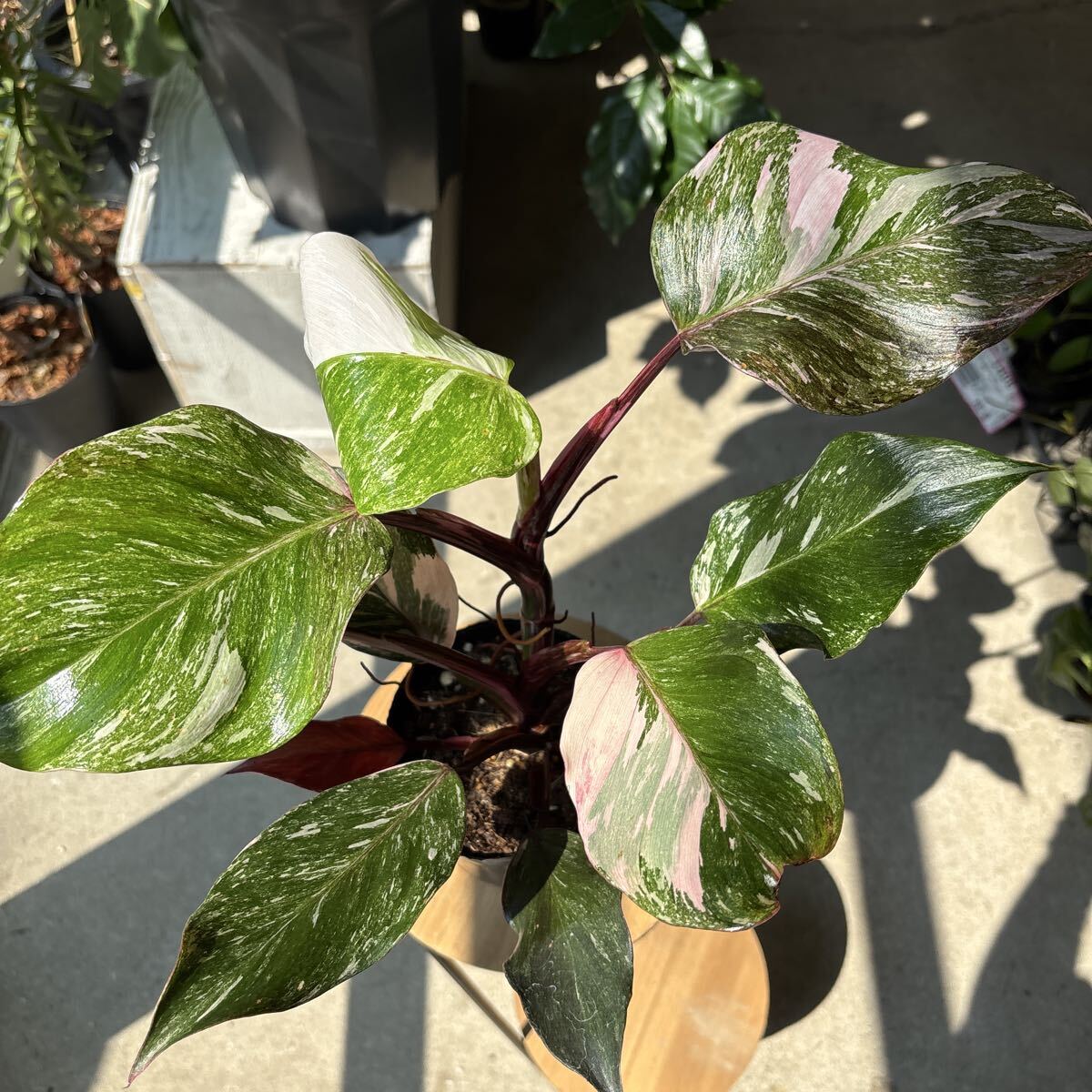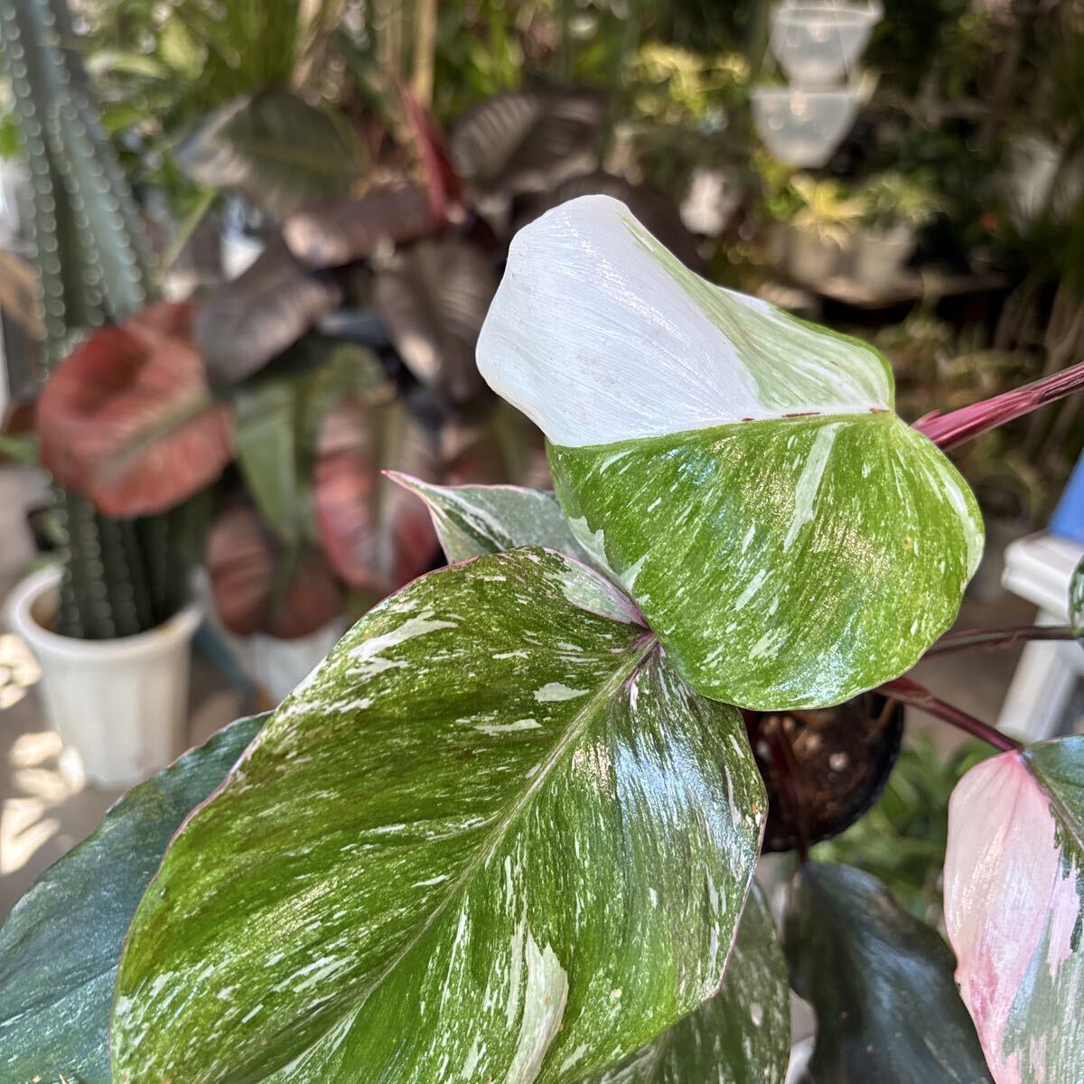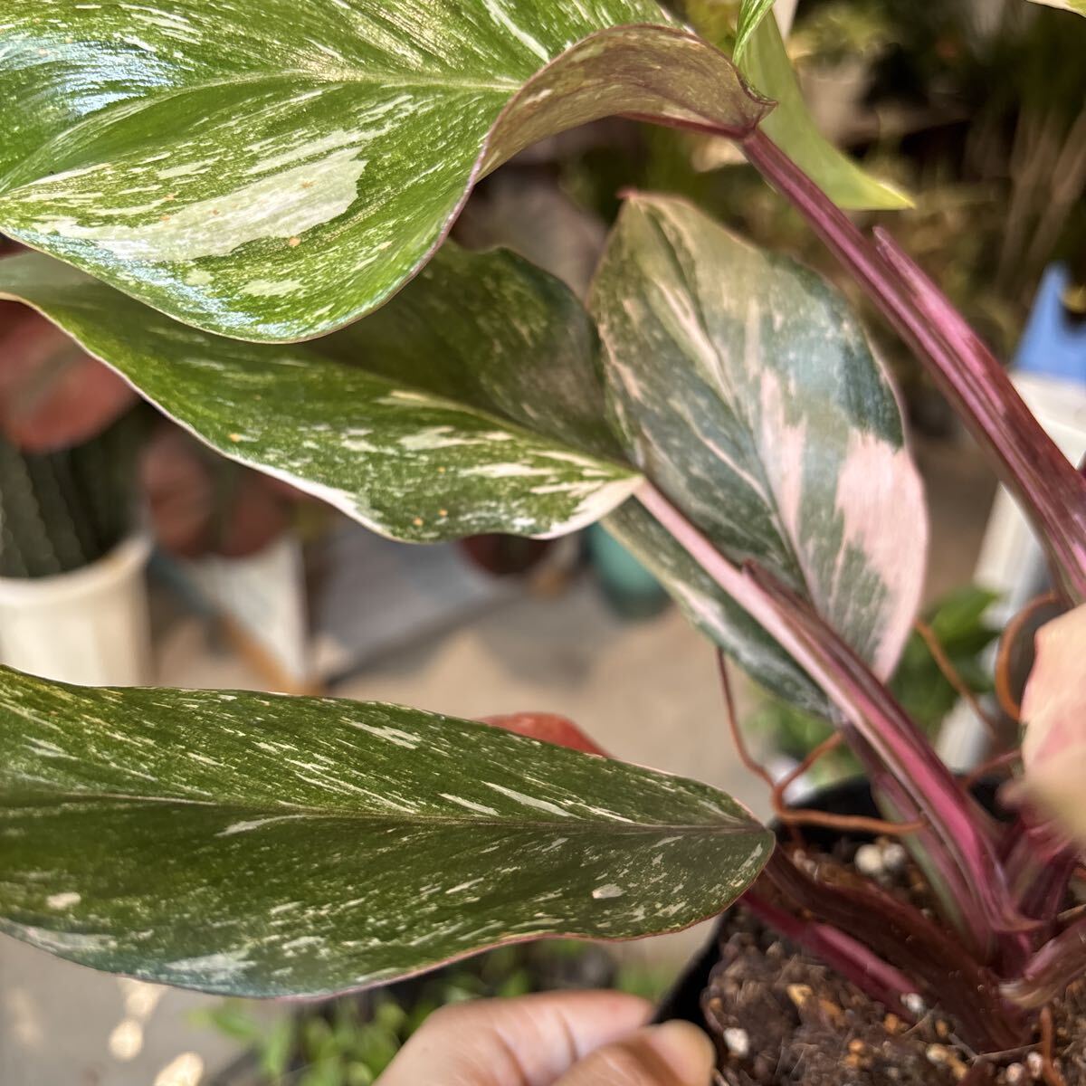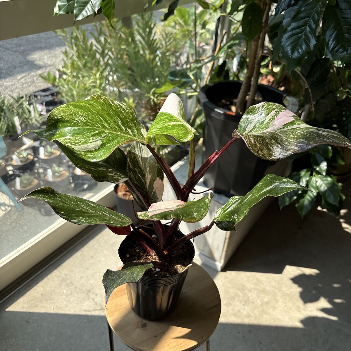 フィロデンドロン マーブルピンクとは、フィロデンドロン属の植物で、紫褐色の葉に淡いピンク色の斑が入り、さらにマーブル状の散り斑が入る、非常に珍しく美しい品種です。宇宙に星を散りばめたような葉の模様が特徴で、「ピンクプリンセスギャラクシー」とも呼ばれ、希少価値の高い観葉植物です。