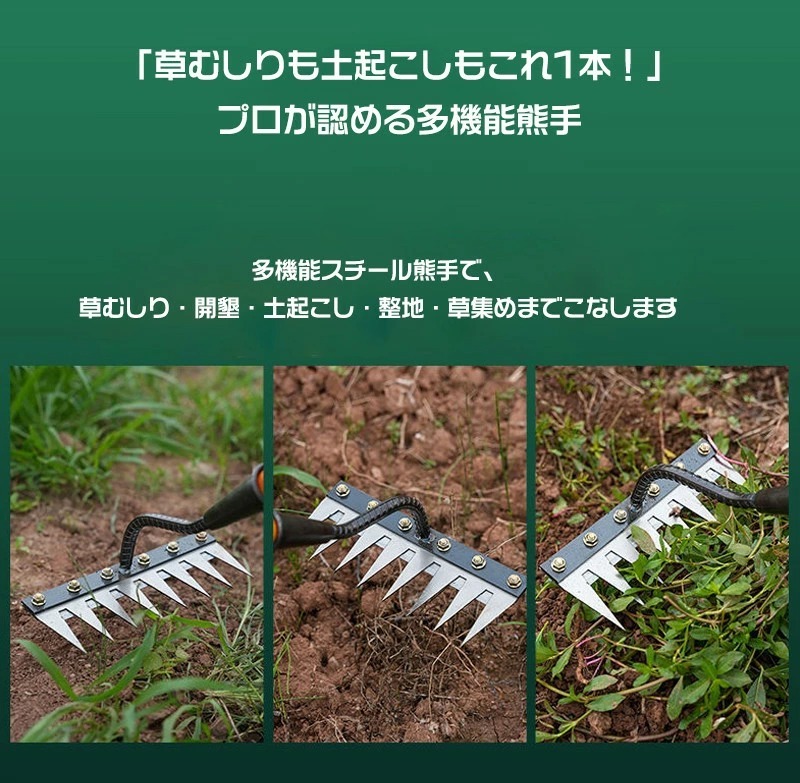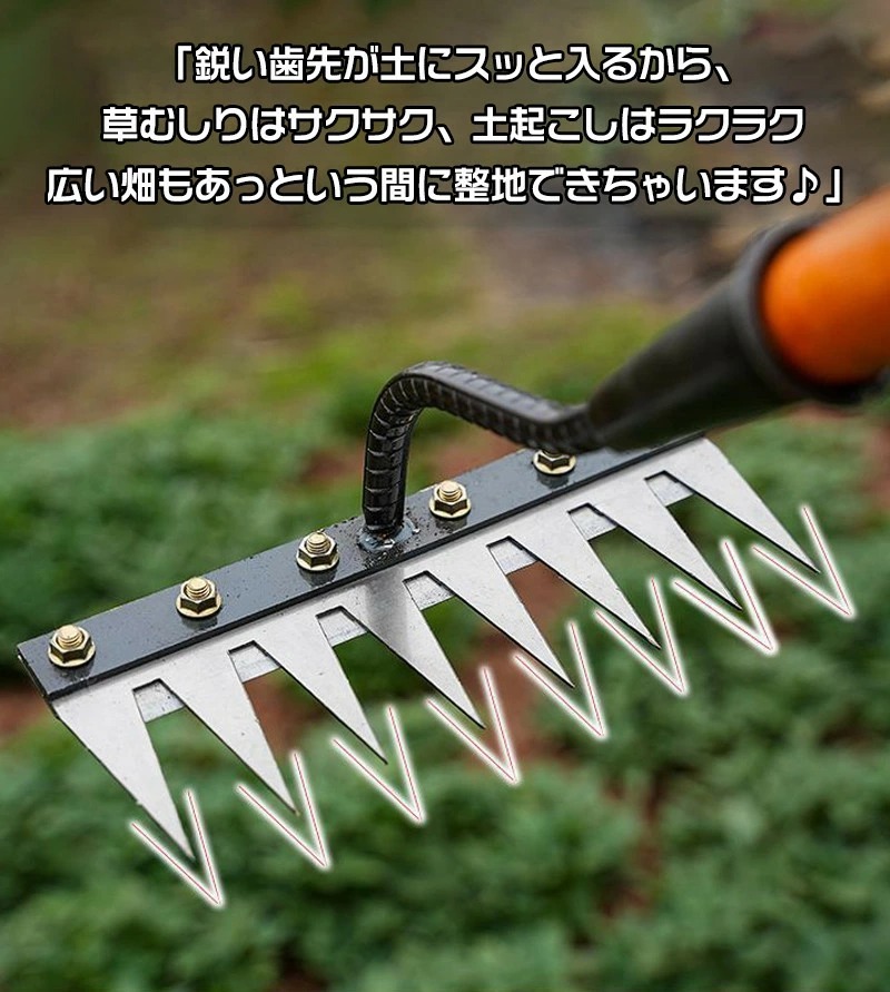 ■【効率的な除草デザイン】多機能草刈りレーキは様々な園芸作業や芝生メンテナンスに最適です。土壌に簡単に食い込む設計で、雑草を根元から確実に除去。美しいガーデン作りをサポートし、園芸作業の効率を大幅に向上させます。