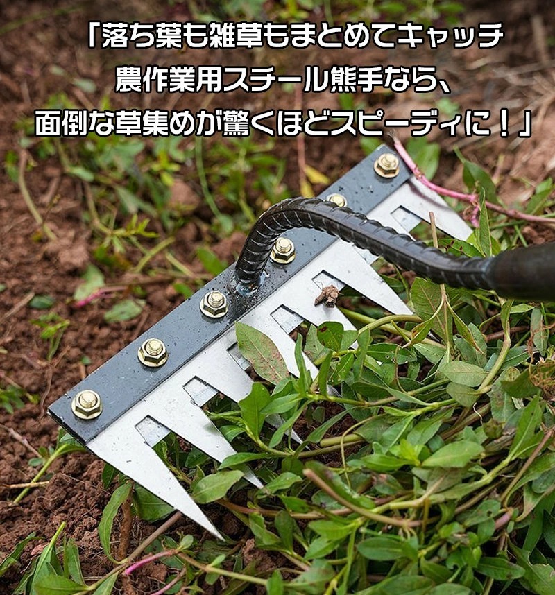 草刈りレーキ ガーデンレーキ ステンレス 熊手 草刈り 多用途 軽量 金属炭素鋼レーキ 田畑 芝生 目土 抜き A888 5歯
