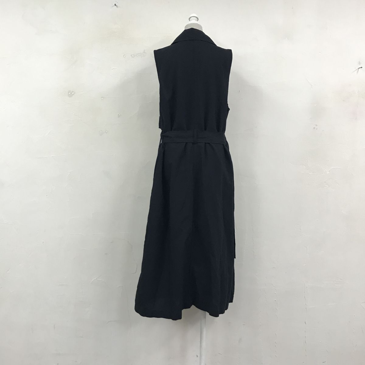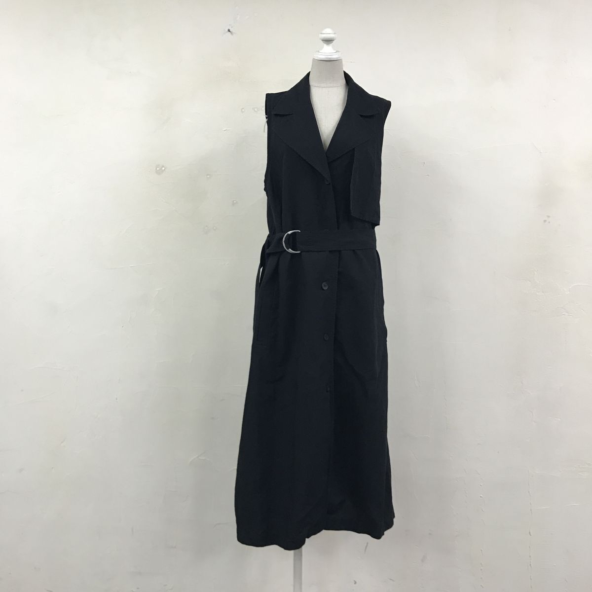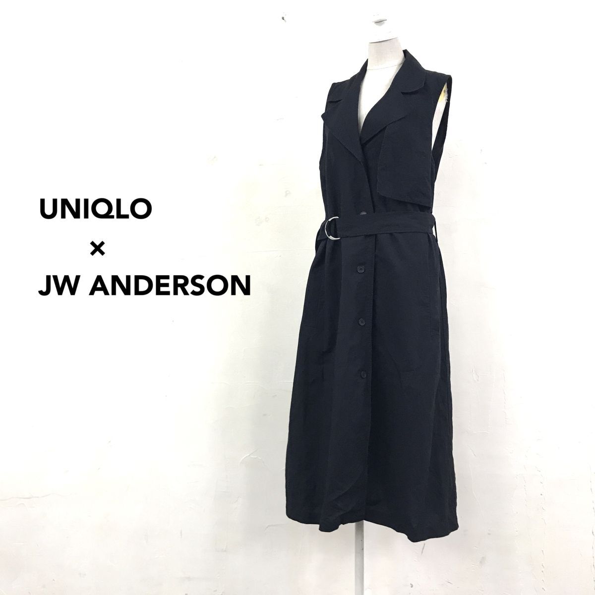 2H2228-G◆ UNIQLO JW ANDERSON ユニクロ アンダーソン ノースリーブロングワンピース ジレ ベルト テーラード ◆ sizeL 黒 麻 レーヨン