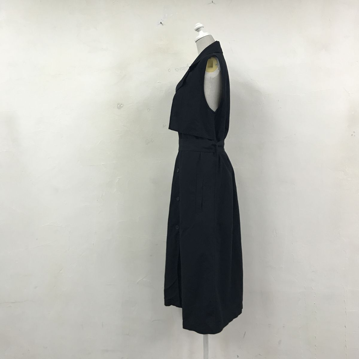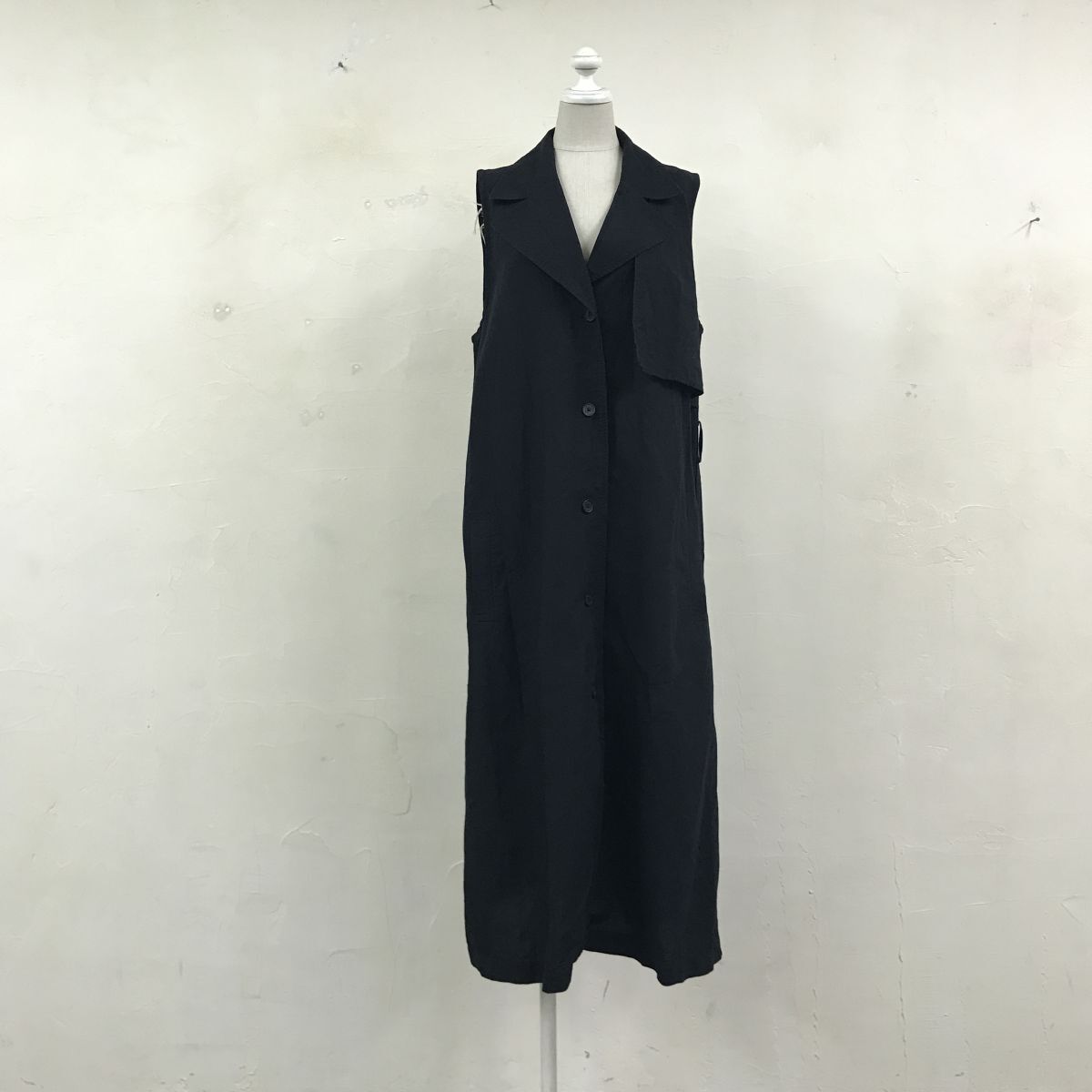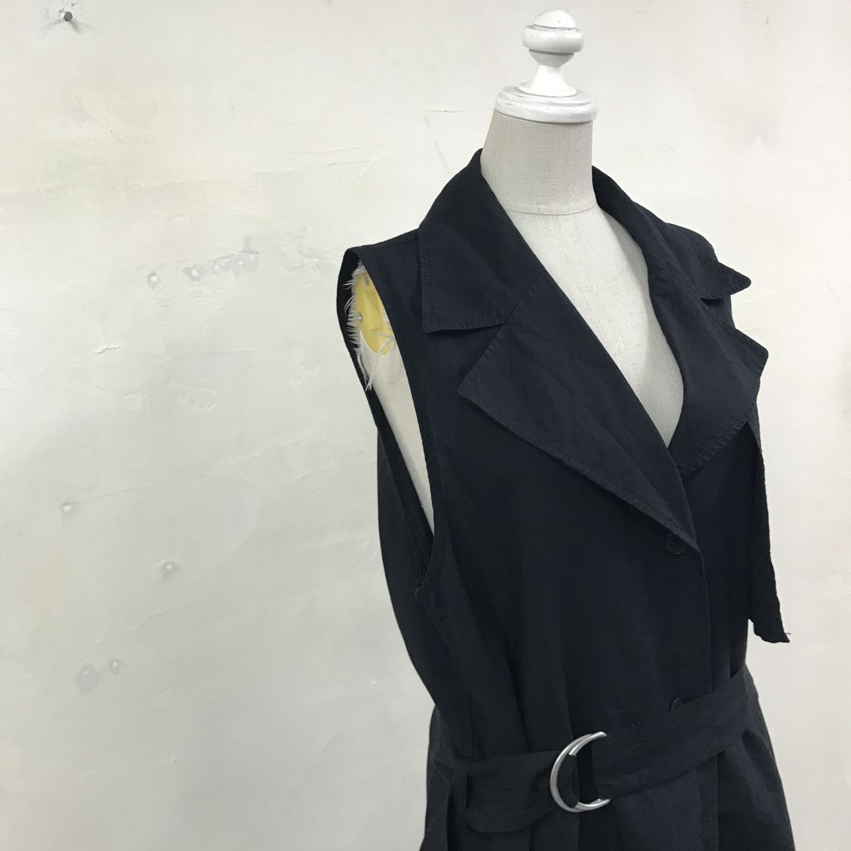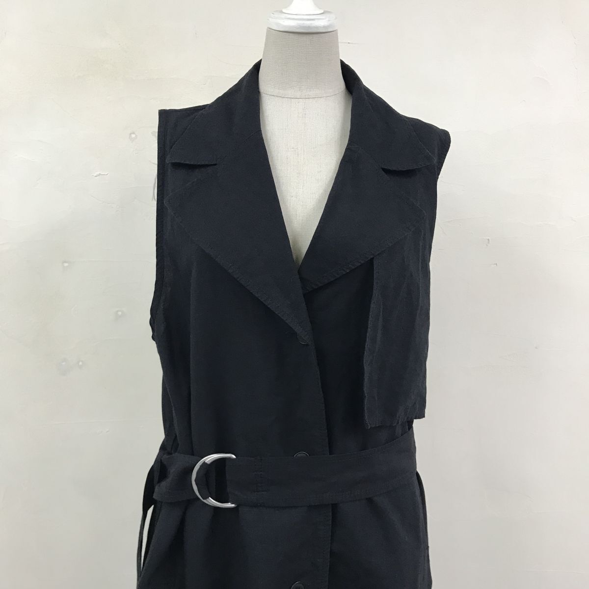 2H2228-G◆ UNIQLO JW ANDERSON ユニクロ アンダーソン ノースリーブロングワンピース ジレ ベルト テーラード ◆ sizeL 黒 麻 レーヨン