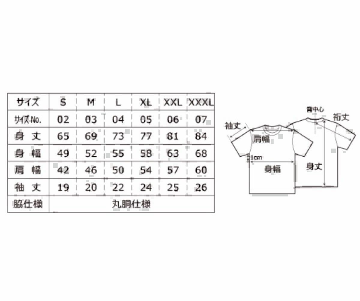 お手持ちのTシャツと記載の大きさ(cm)を比べてご自身で判断ください。