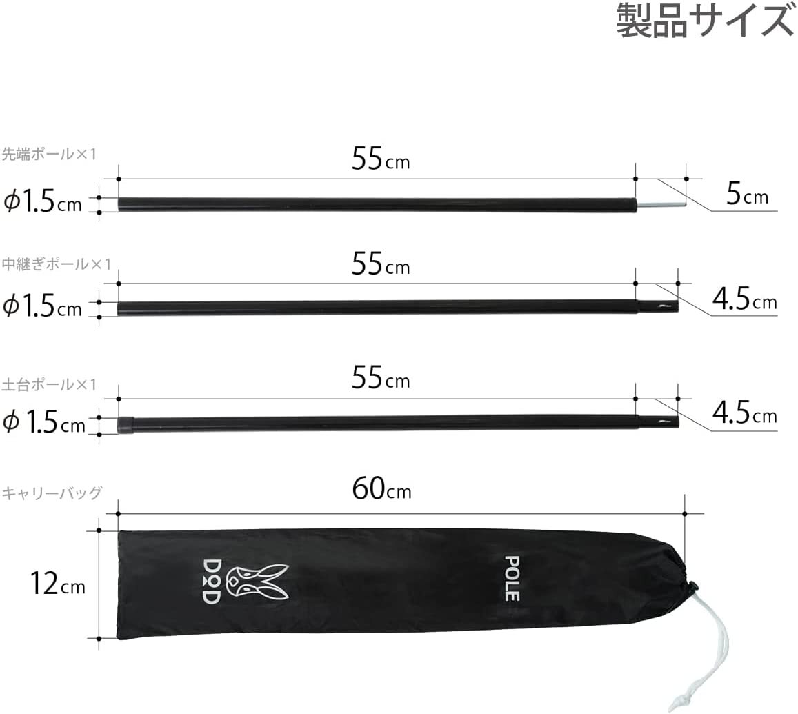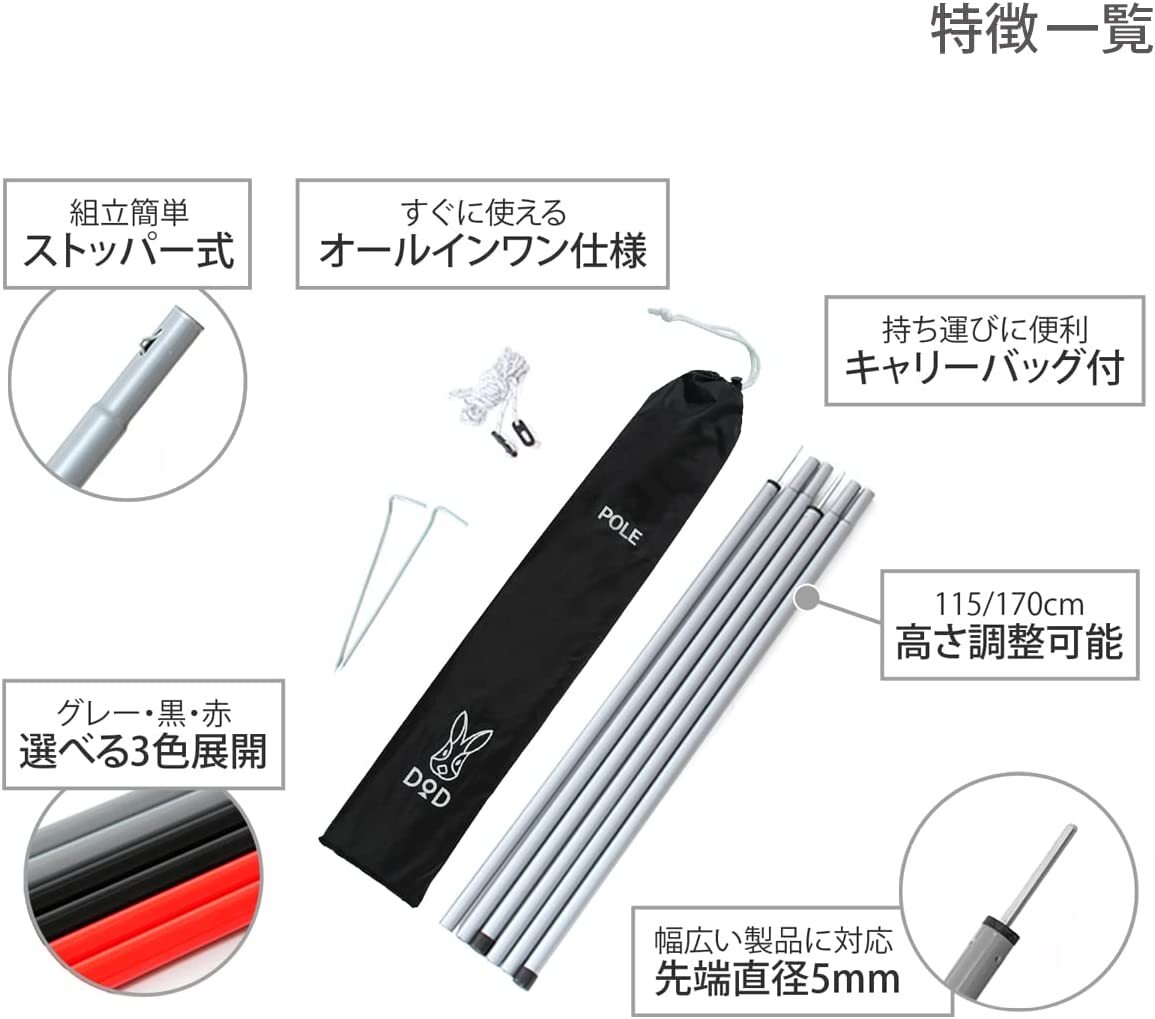 材質合金鋼 色ブラック ブランドDOD(ディーオーディー) スタイルポータブル 商品の重量1 キログラム この商品について サイズ:(約)直径1.5×長さ170cm(先端直径:5mm) 収納サイズ:(約)W60×D12×H2cm 材質:スチール 重量:(約)1.0kg 付属品:ペグ×2本、ロープ×2本、キャリーバッグ ストッパー式、組立簡単 差し込むだけでしっかり固定ができるストッパー(スプリング)式のジョイント構造。工具不要で簡単に組立・撤収ができます。さらに分割式ポールなので、連結本数を変えるだけで自由に長さを調整することができます。 |