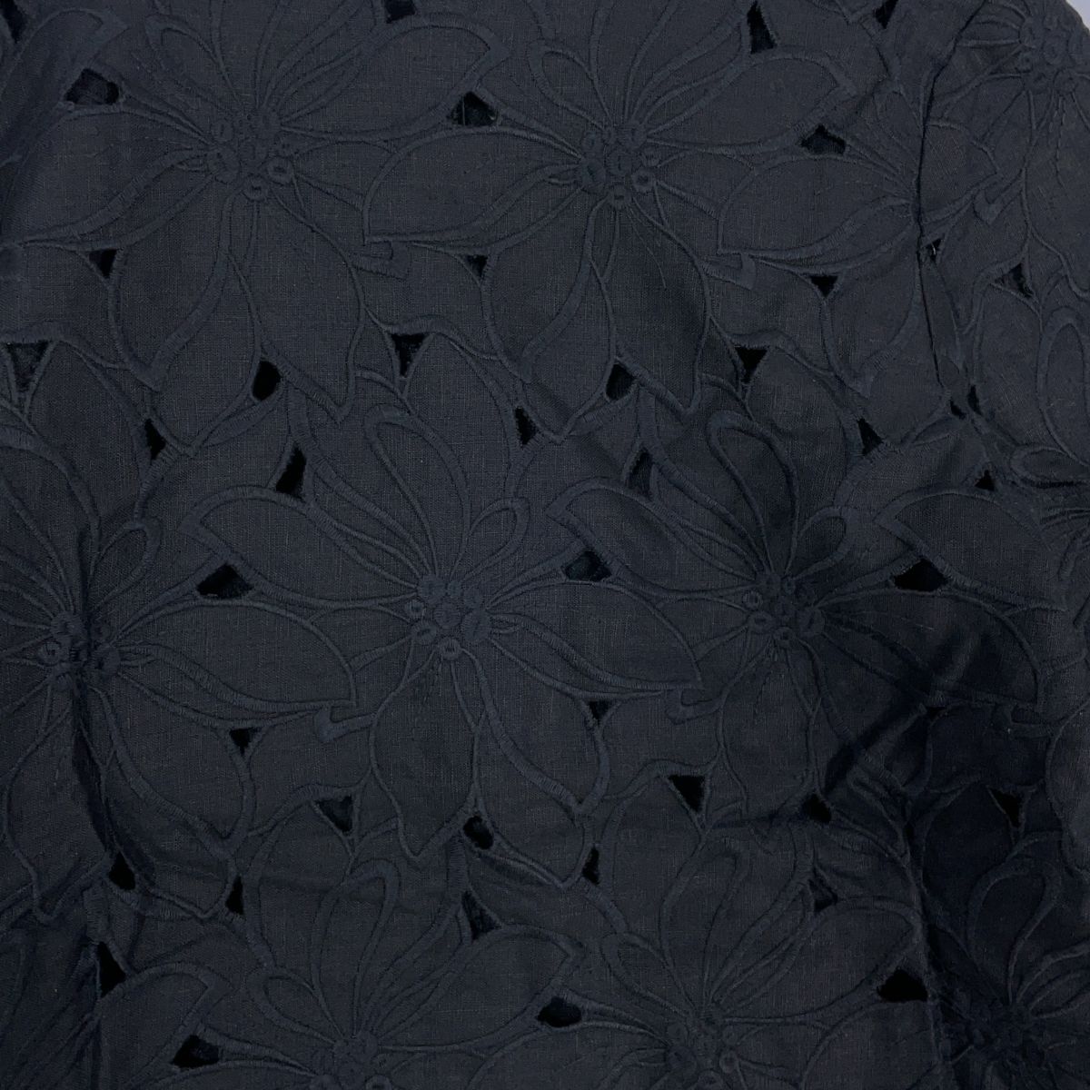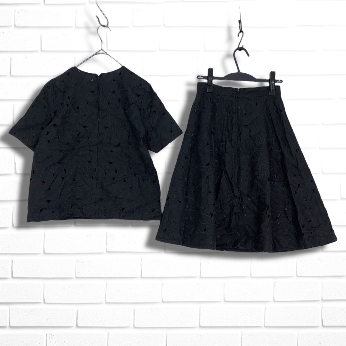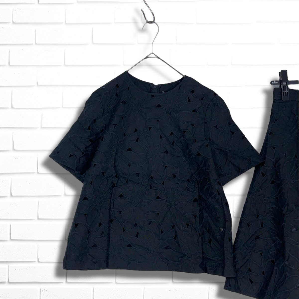 ◆良品◆ R 23区 高橋リタ アール リネン 麻 100% サマー セットアップ 花 フラワー 刺繍 レース 半袖 プルオーバー ブラウス + スカート 黒 ブラック レディース 32 ◆送料無料◆ 4315H◎