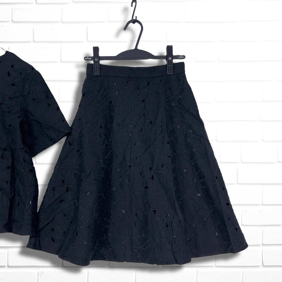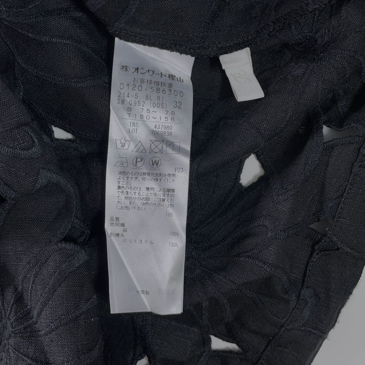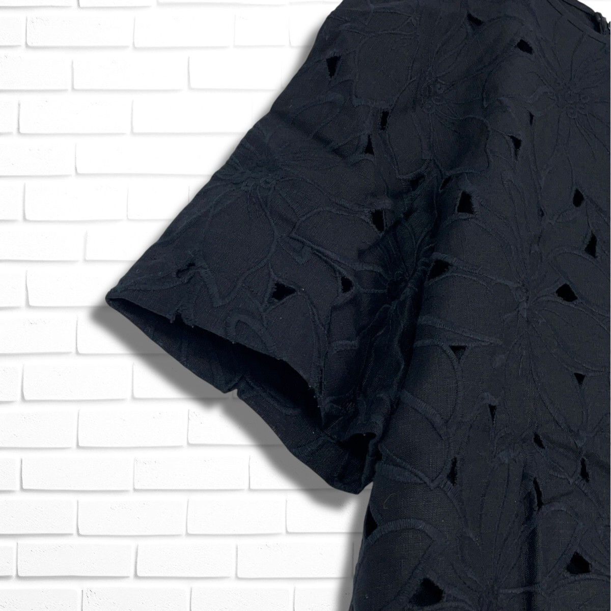 ◆良品◆ R 23区 高橋リタ アール リネン 麻 100% サマー セットアップ 花 フラワー 刺繍 レース 半袖 プルオーバー ブラウス + スカート 黒 ブラック レディース 32 ◆送料無料◆ 4315H◎
