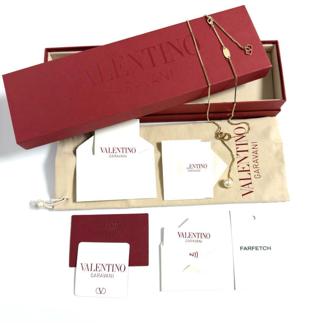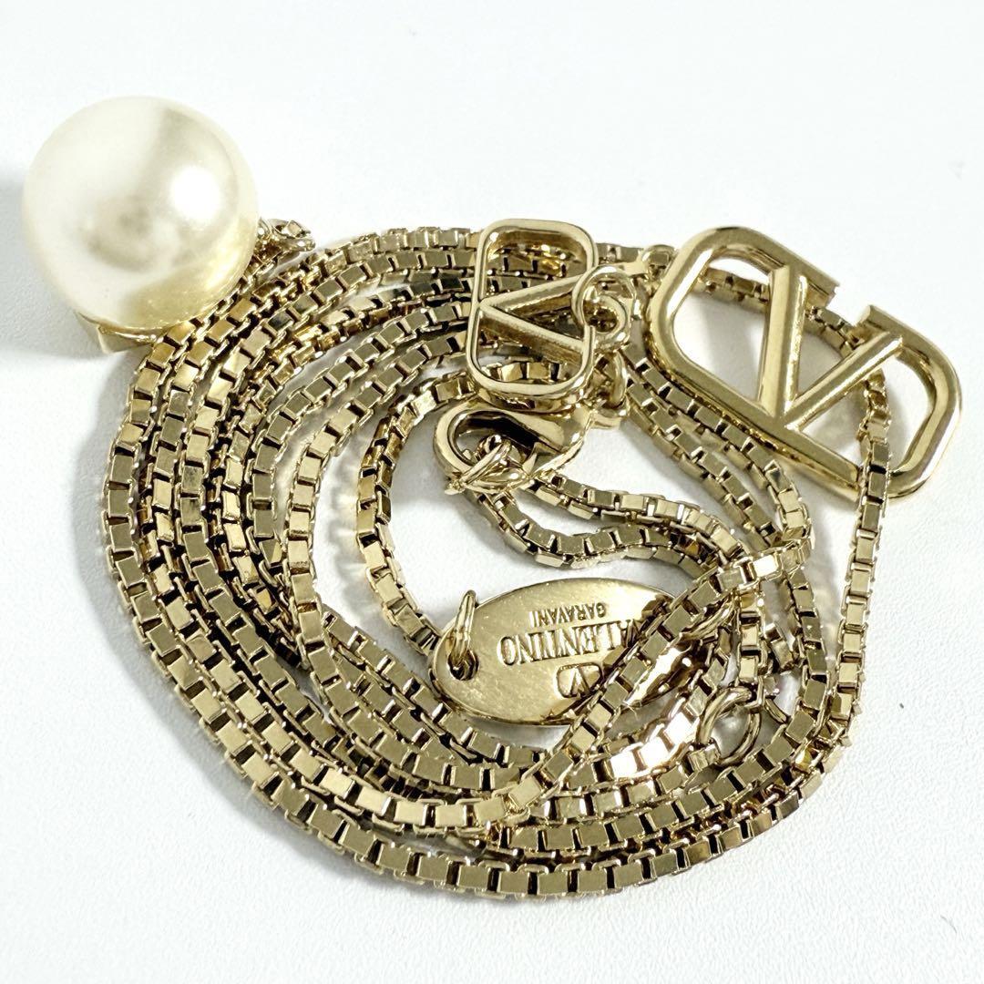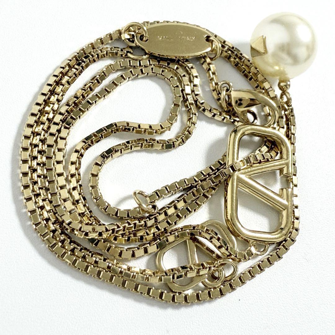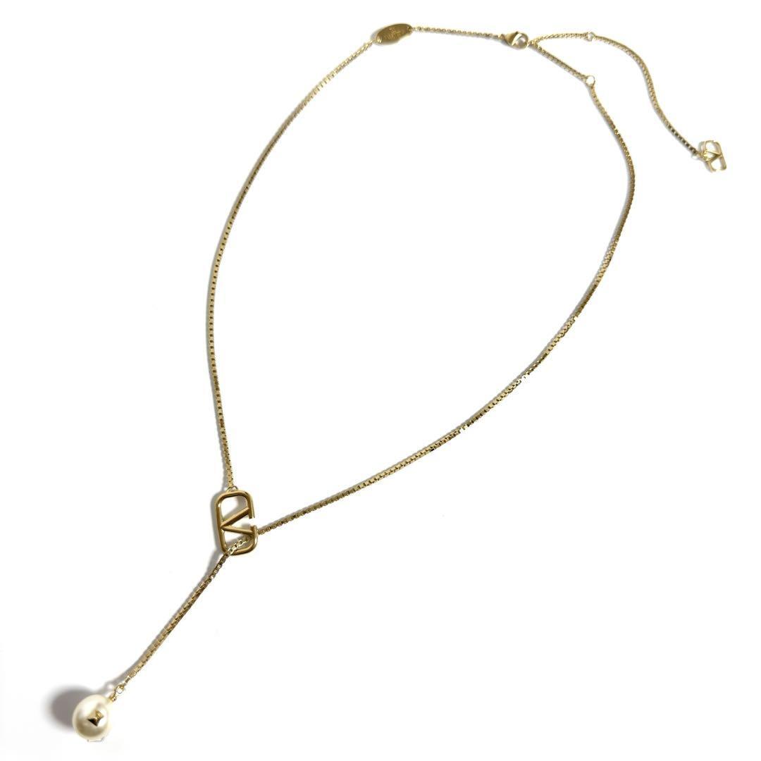 Vロゴ シグネチャー メタル x スワロフスキー パール ネックレス