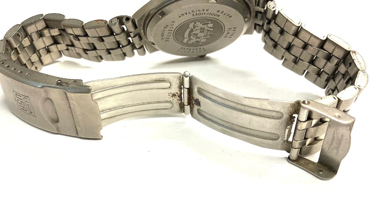 | 商品に興味をもっていただき、ありがとうございます。 以下お読みいただき、入札をお待ちしています。 【商品の説明】 商品名 :qow.ZEQ03 ELGIN エルジン TITANIUM/SOLADRAIVE 白盤×チタン FK-1149-0 腕時計 ソーラー 型番:FK-1149-0 ケース横幅 :横幅:約38.5mm(リューズ含む) ケース素材 :チタン ムーブメント:ソーラー 腕回り:約17.5cm(コマなし) ベルト純正:〇 尾錠純正:〇 防水:100M 【商品の状態】 ・動作確認済みですが、秒針が通常のテンポと違いますので難ありと致します。 ・細かな傷や隙間汚れがございます。 ・ベルトに擦れや隙間汚れあり。 【その他】 ○不明点、不安な事がありましたら入札前に遠慮なくご質問下さい。 ○商品の状態はできる限り写真、説明でお伝えしておりますが見落としている箇所もあるかもしれません。 中古品にご理解ある方のみご購入お願いいたします。 |