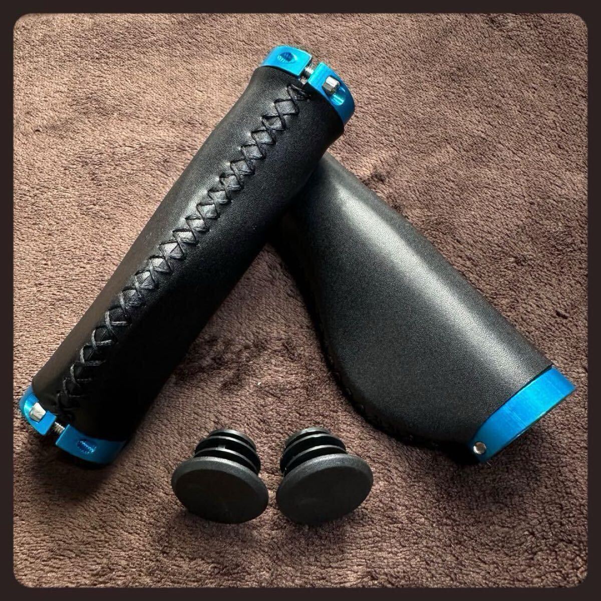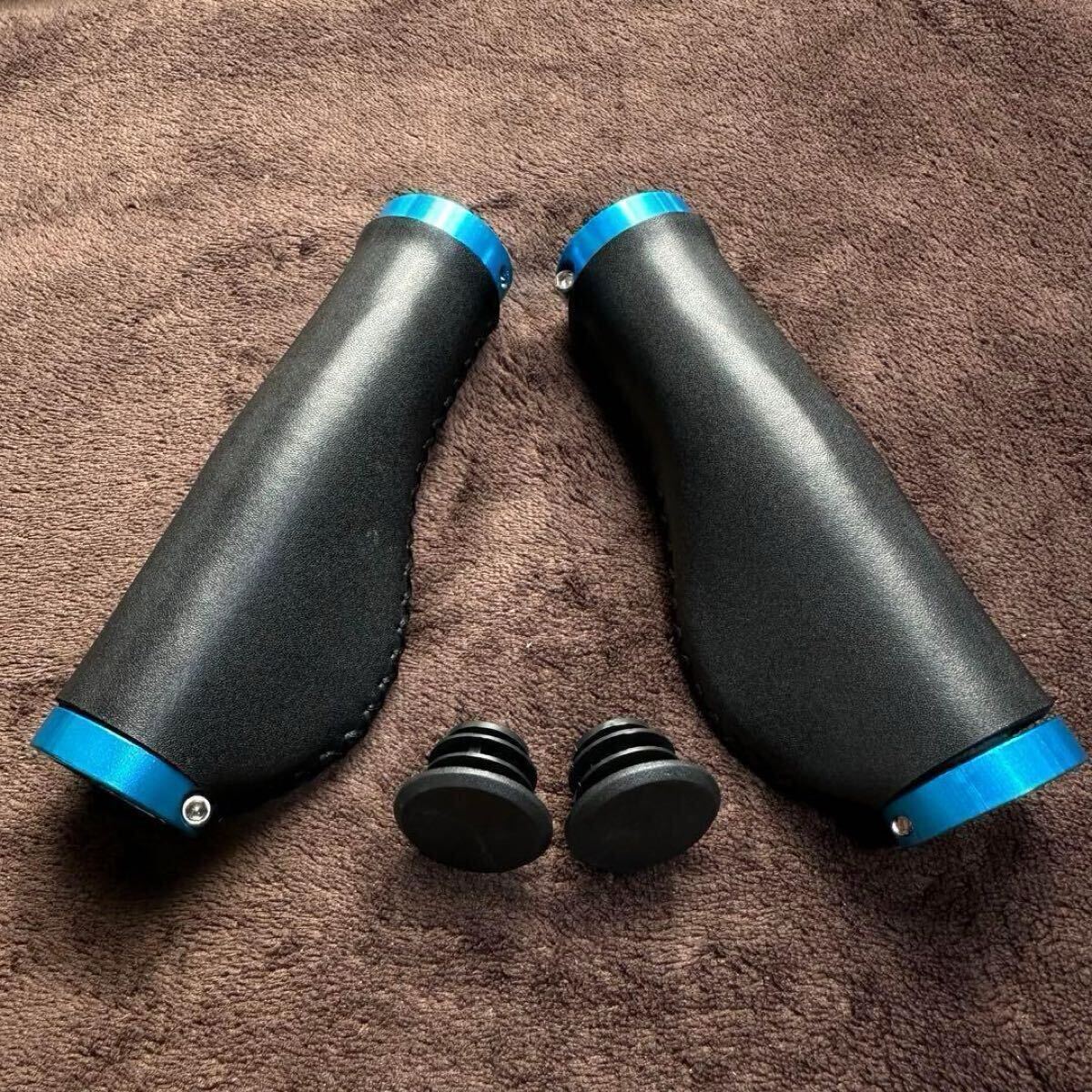 ブラック 黒 ハンドルバー グリップ 自転車 MTB マウンテンバイク クロスバイク エルゴグリップ レザー調