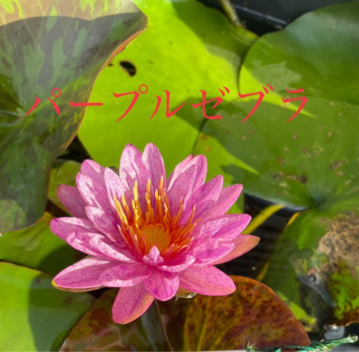 今回出品するのは、HT耐寒性睡蓮のパープルゼブラ苗〔紫斑入り色です。