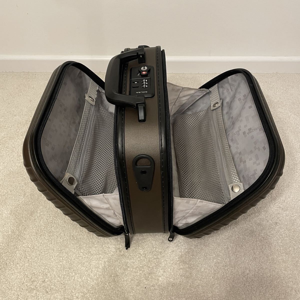 もちろんTSAロック、ハンドル、内装のゴムバンドなど機能的に問題はなく、開閉もスムーズで全て完璧に作動します。