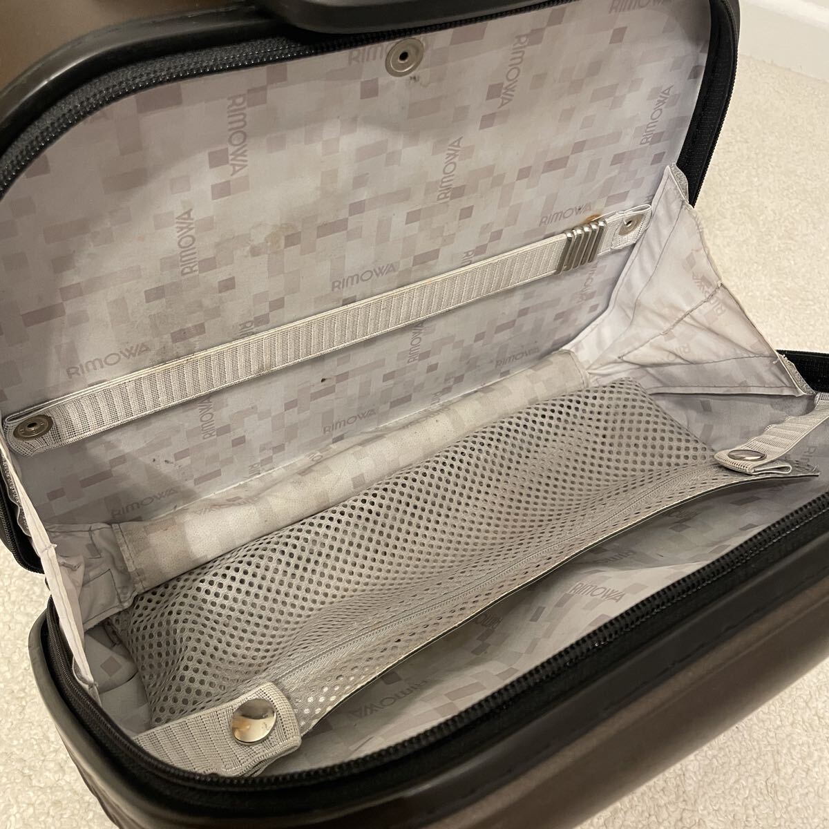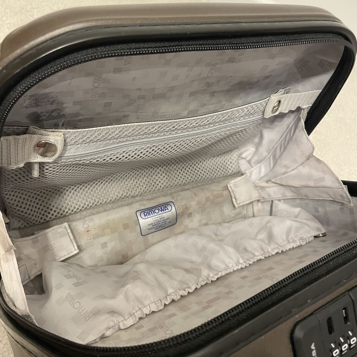 内側のライナーにはRIMOWAのロゴがあしらわれたモノグラムデザイン。TSAダイヤルロック付きで密閉性や安全性はリモワならではの高い性能を備えています。