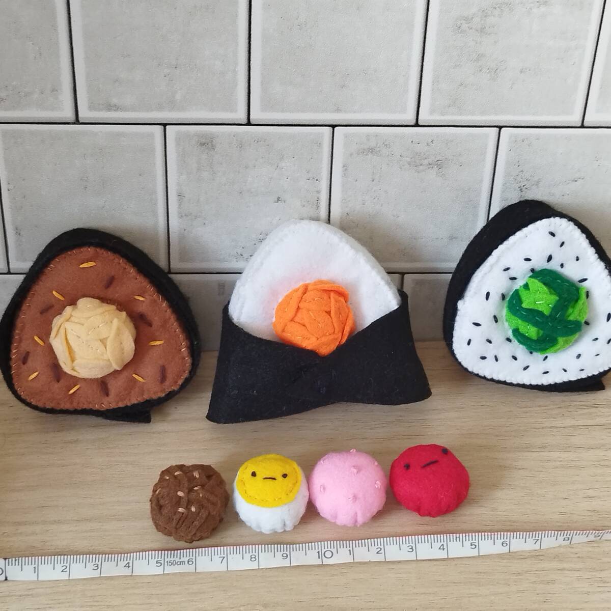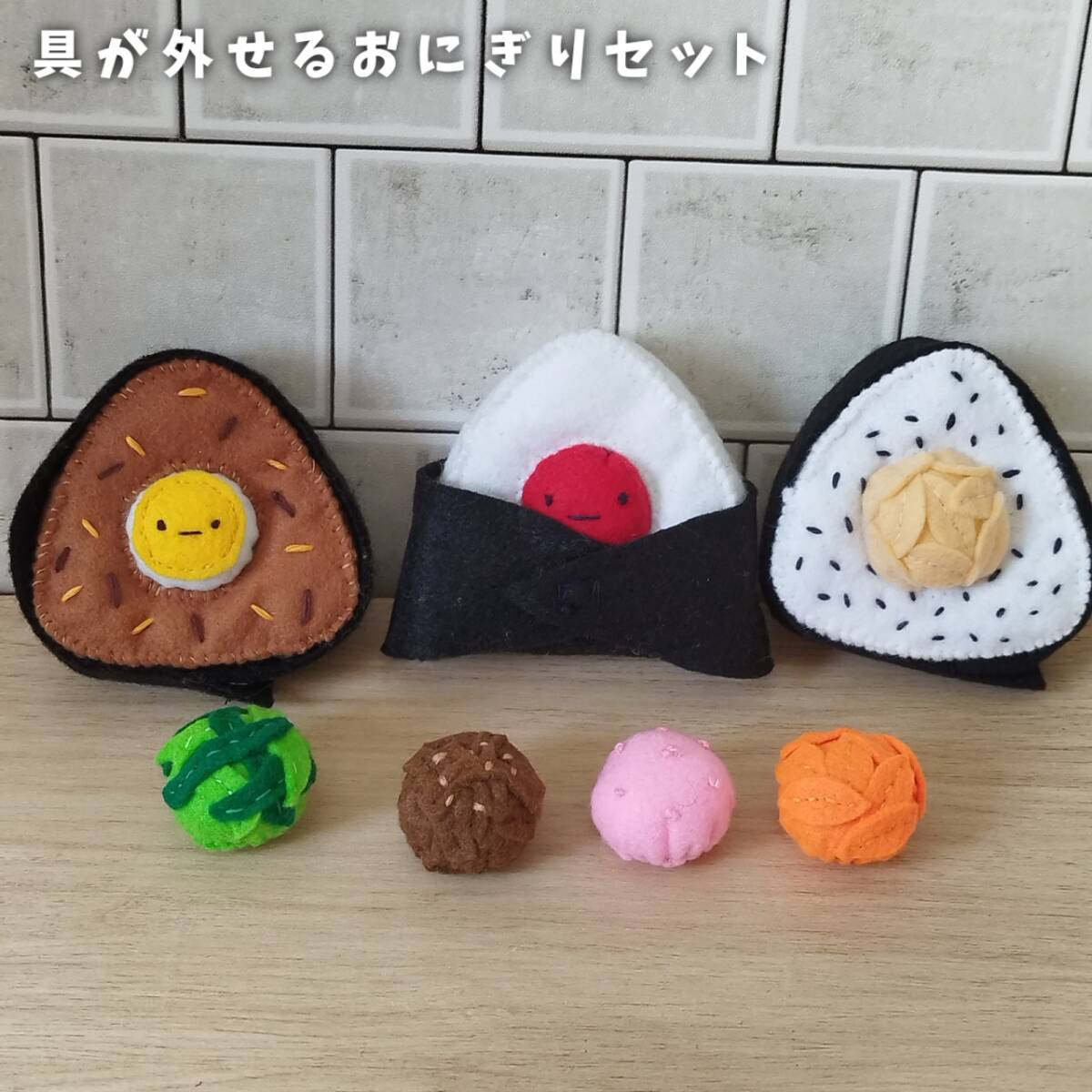 取り外しができる具になっていますので、お好きな具をおにぎりに、はめ込んで遊んで頂けます。