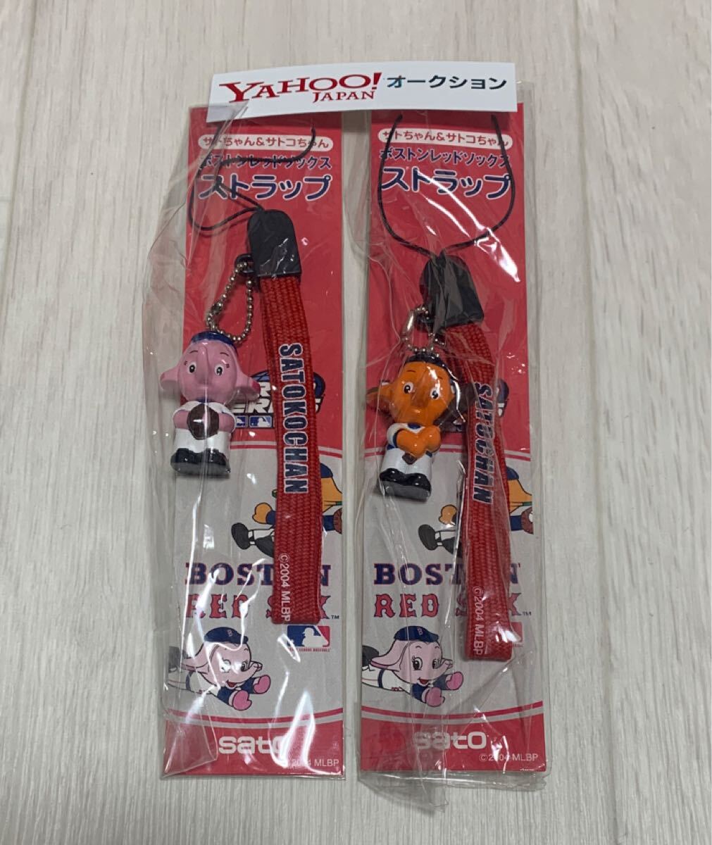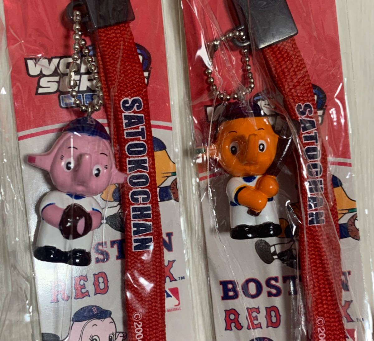 佐藤製薬のサトちゃん・サトコちゃんストラップ(ボストン レッドソックスVer.)です。