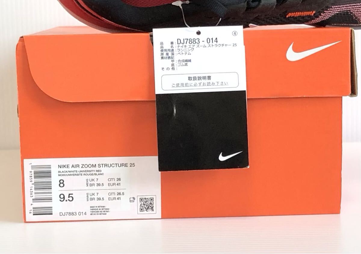 新品 送料込 NIKE AIR ZOOM STRUCTURE 25 26cm/US8 黒/赤 ナイキ エア ズーム ストラクチャー 25 RUN ロード ランニング