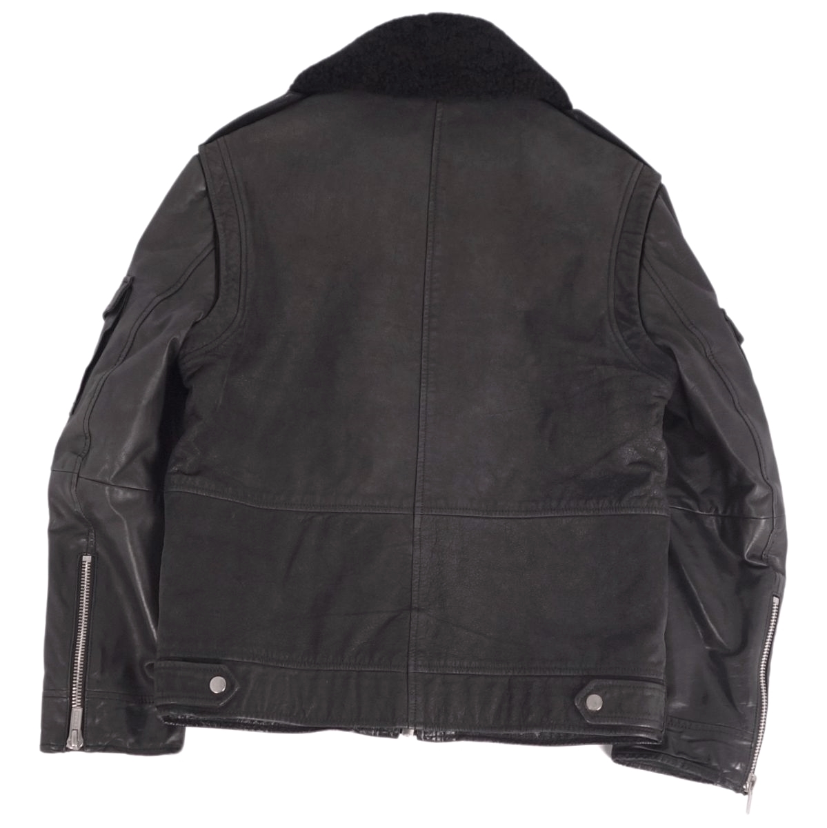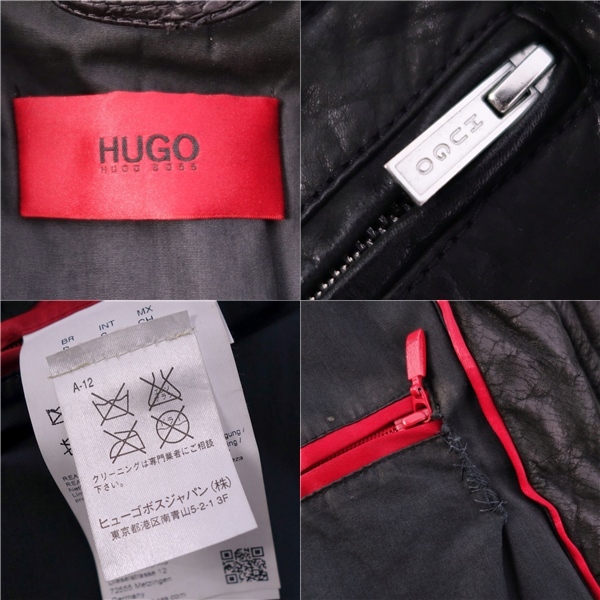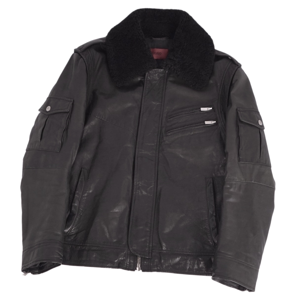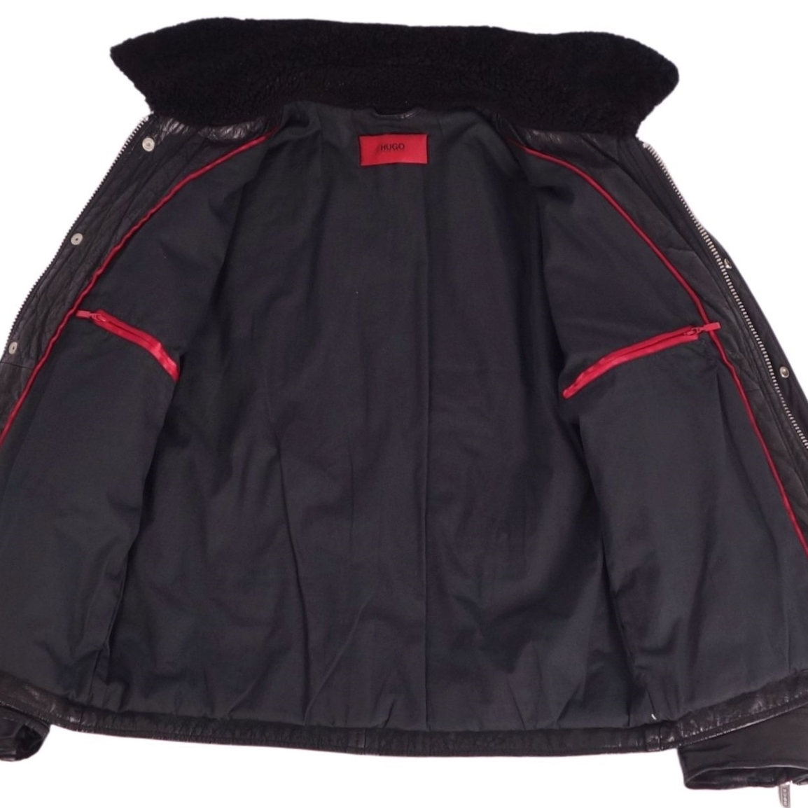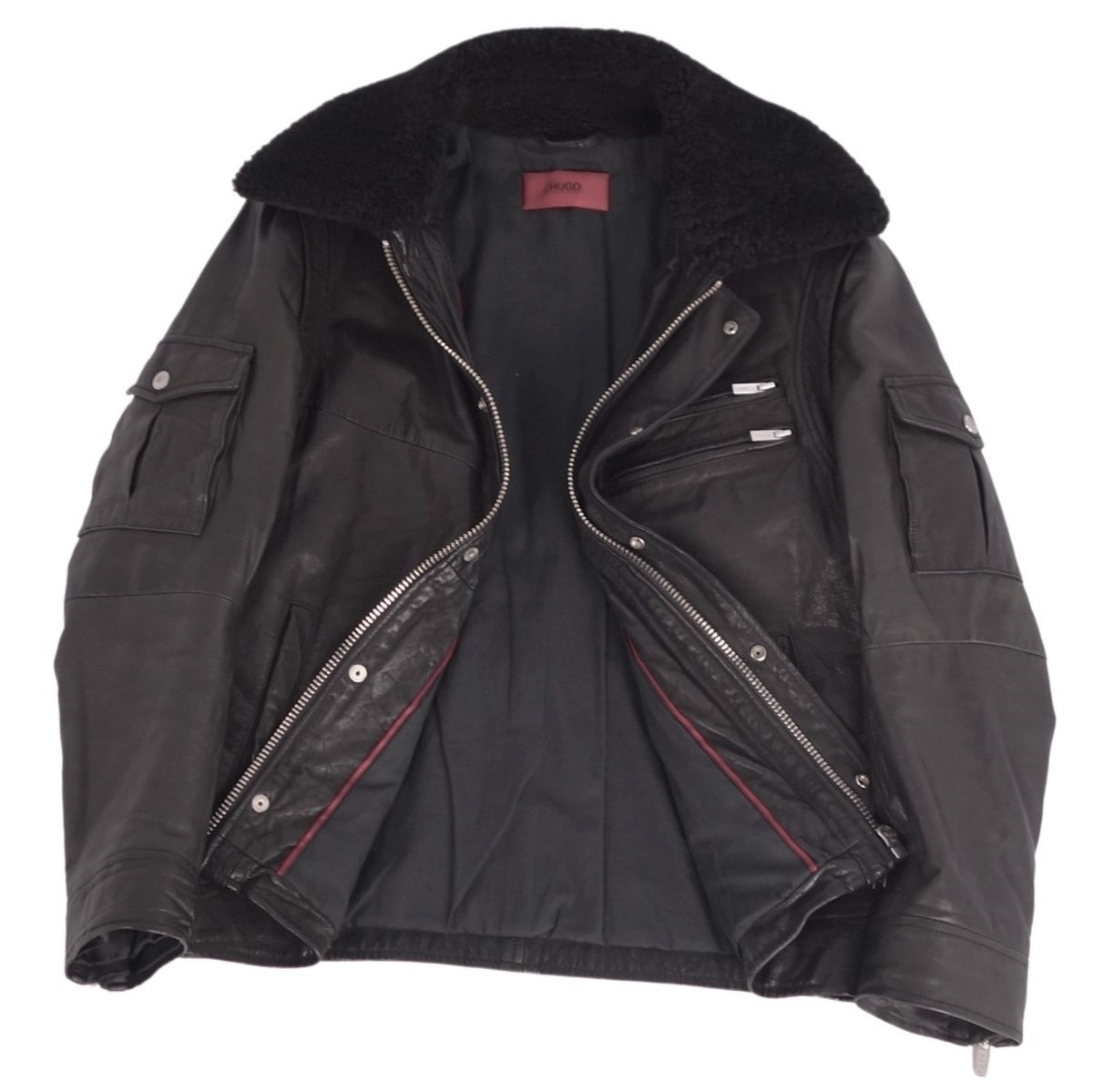 美品 ヒューゴボス HUGO BOSS ジャケット レザージャケット 襟ムートン バッファローレザー アウター メンズ S ブラック |