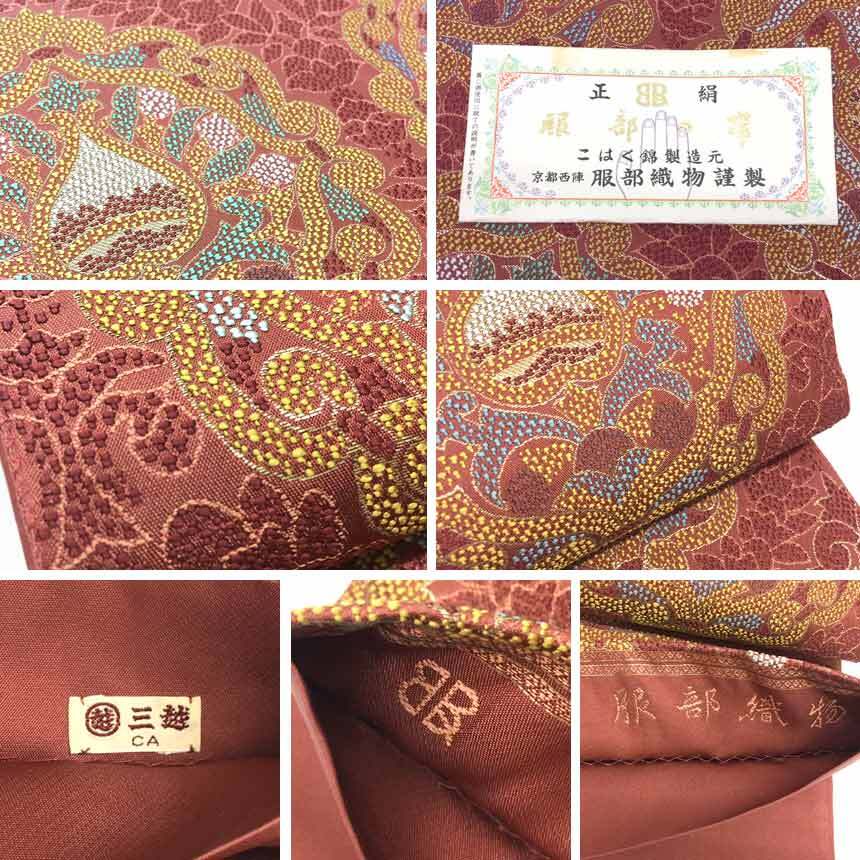 | 商品名 | 京やJ205 正絹 袋帯 特選ブランド帯 京都西陣 服部織物謹製 【服部織物】 特選西陣手織袋帯 ≪こはく錦製造元≫ 唐織錦 はっとりの帯 西陣織工業組合証紙番号NO.259 袷の着物 単衣の着物兼用 新古品 未使用 美品 仕立て上がり 送料無料 |