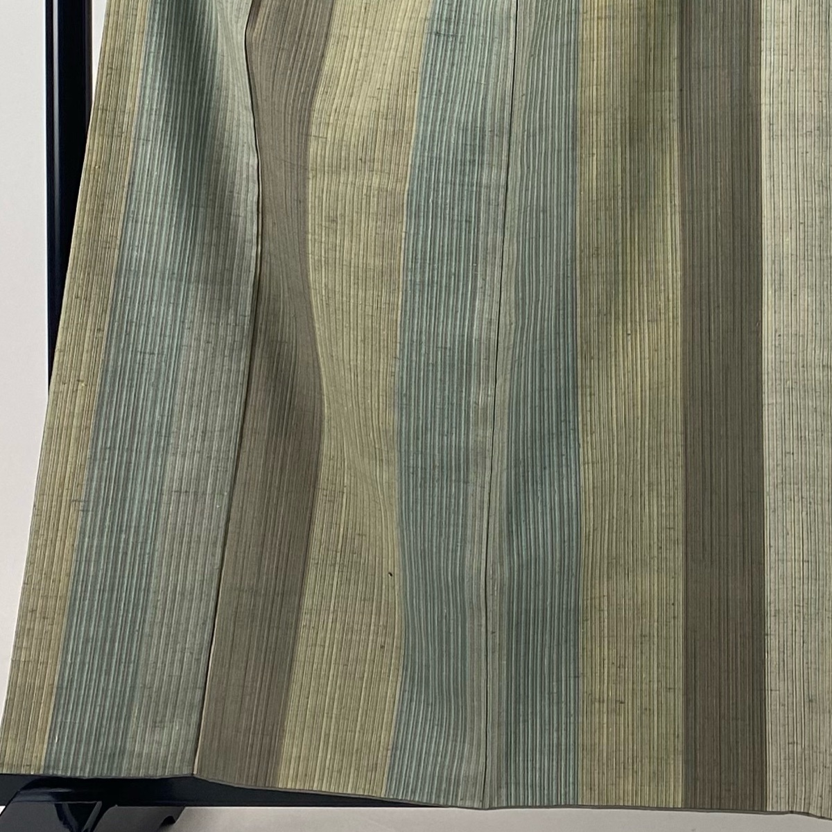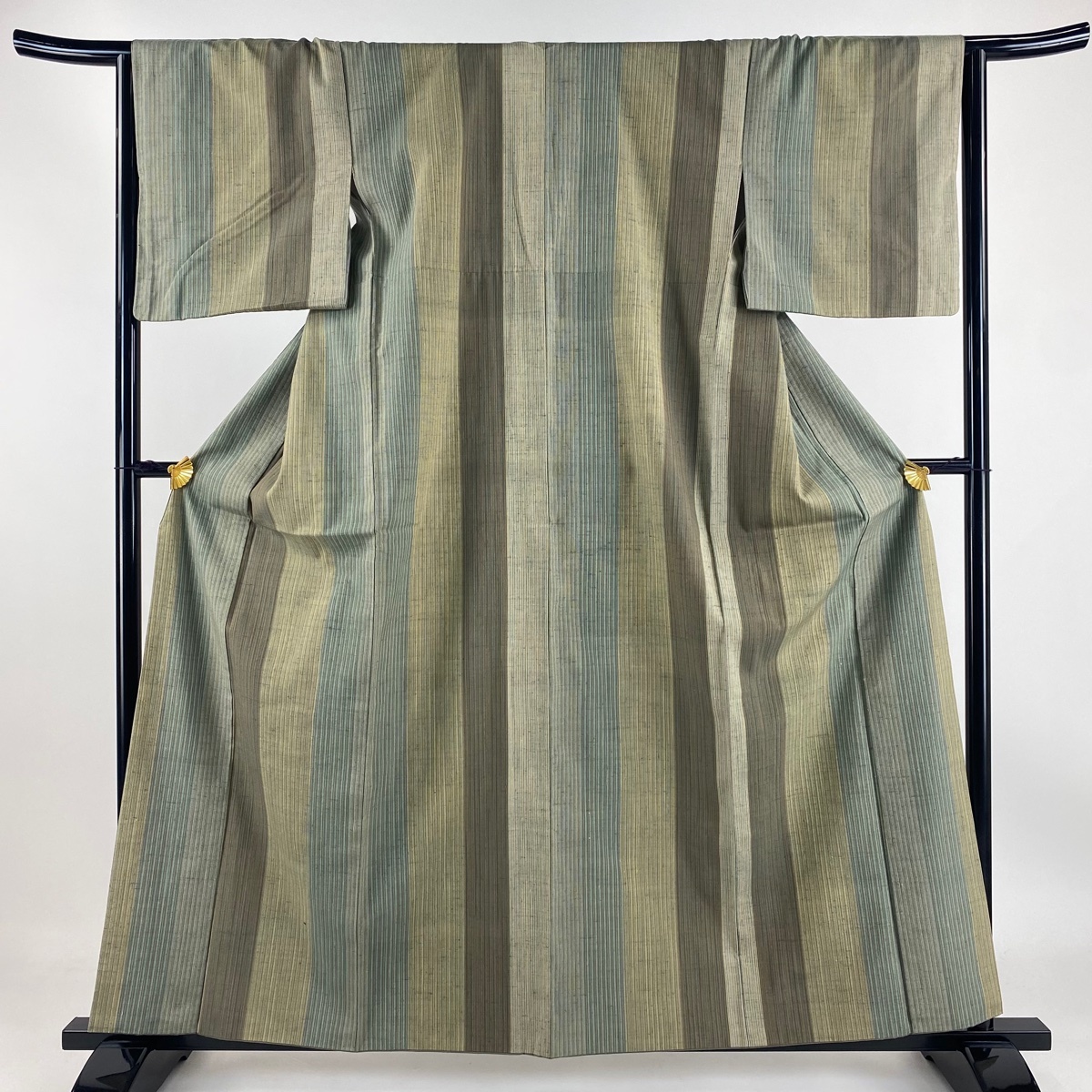 | 紬 秀品 縦縞 灰茶 袷 身丈159.5 裄丈65.5 M 正絹 【中古】 |