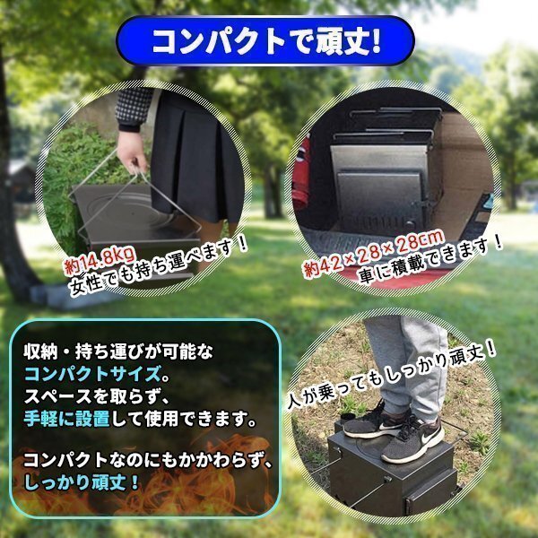 折り畳み式 薪ストーブ アウトドアコンロ 屋外 焚き火台 バーベキュー コンパクト 車載 BBQ 火の粉止め 暖房 調理 Mサイズ
