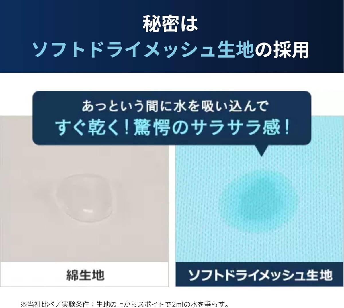・肌側にソフトドライメッシュ生地を採用。