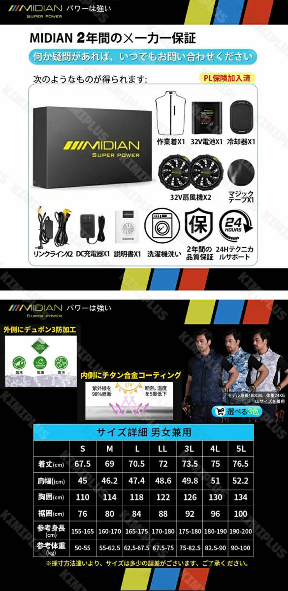 業界独創 冷却器と扇風機付き 空調作業服 空調ウェア 作業服 32V 20000mAh大容量バッテリー ペルチェ素子冷却技術 冷却服 現場 外仕事