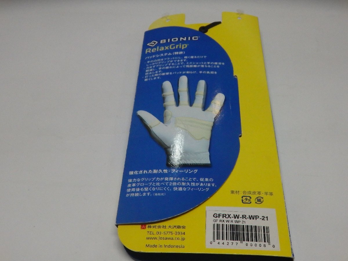 | 在庫処分品 BIONIC stablegip 右手 グローブ (レディス 左利き用) 21cm ホワイト/ピンク | |