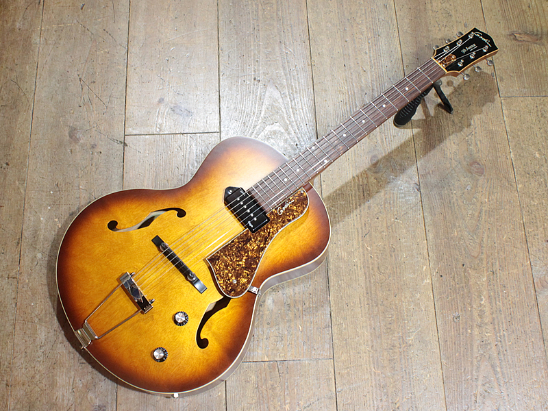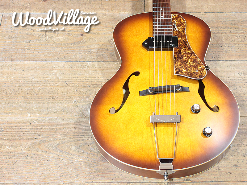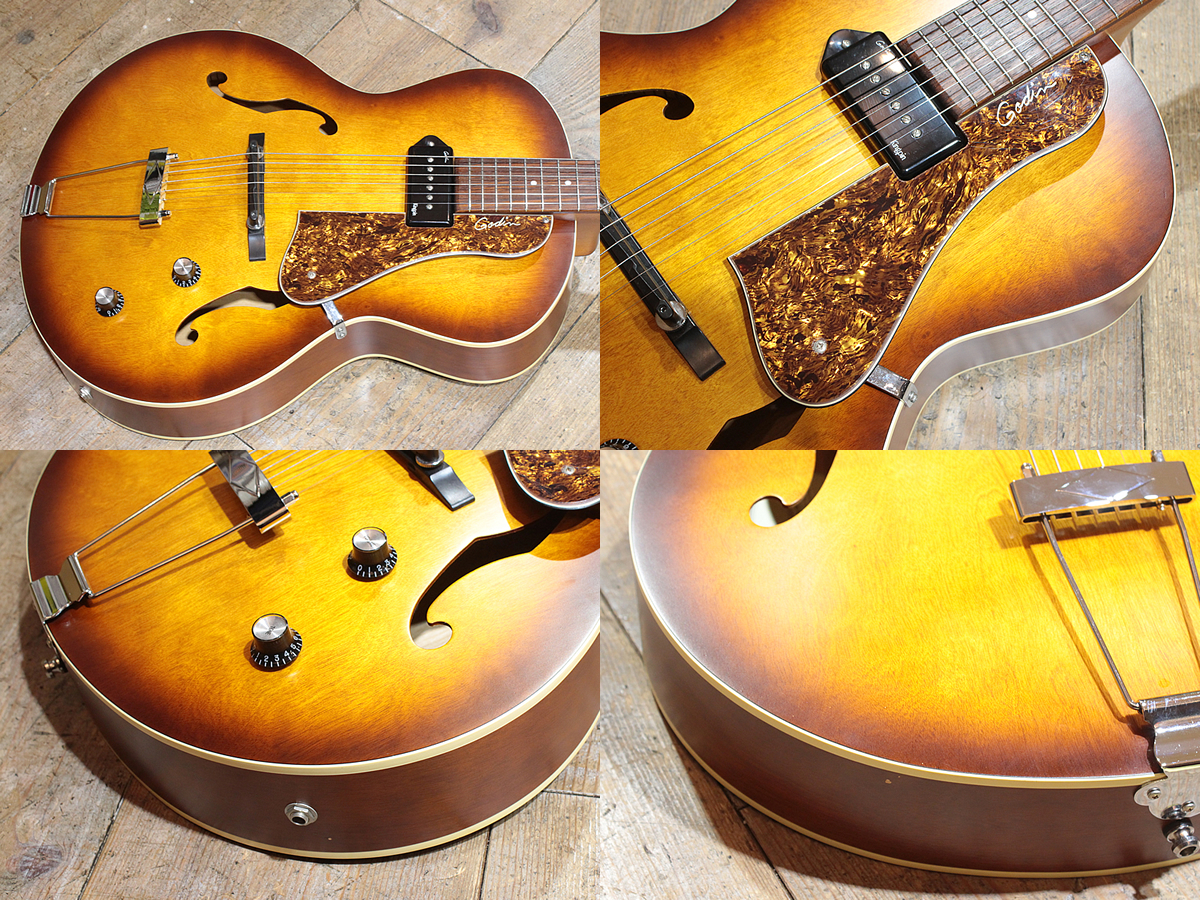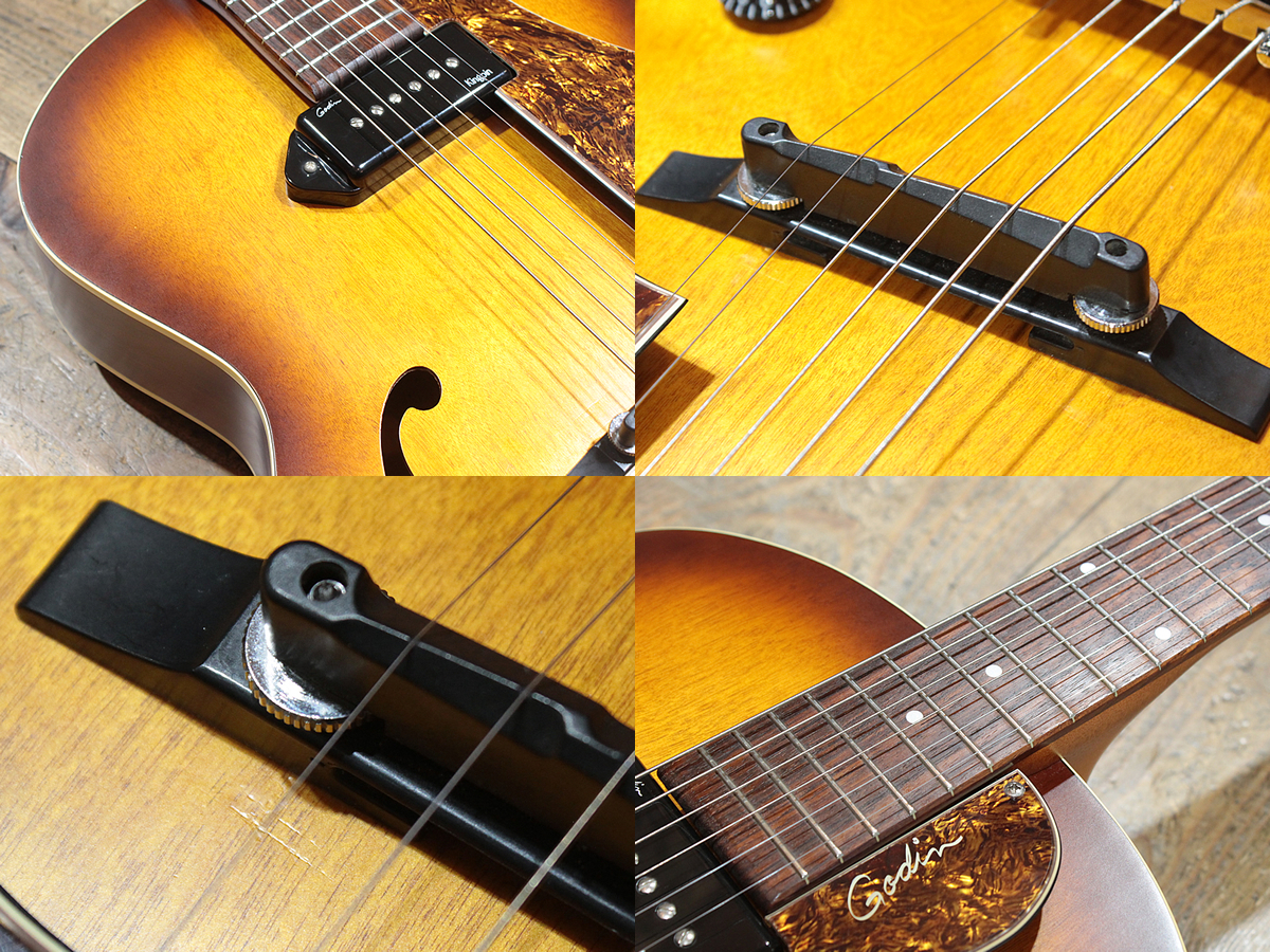 エレガットでその名を馳せたGodin(ゴダン)。本機はジャジーな1PUのフルアコです。自社製のP-90を搭載し、コントロールはボリュームとトーンのみ、というシンプルさ。プレイに集中できますね。