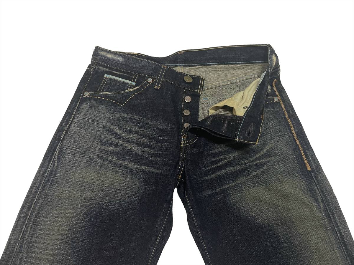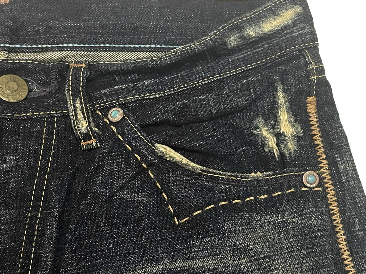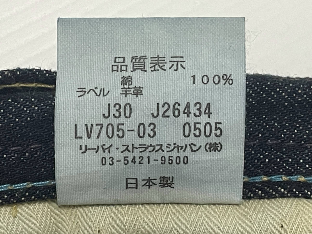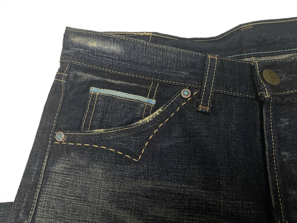 | ブランド:リーバイス 型 番 :LV705-03 カラー :インディゴ 状 態 :USED リーバイス LV705です。 ユーズド・ダメージ加工。フラップポケット、カラフルステッチと印象的なジーンズです。 着用に支障あるダメージはございません。 お探しの方お勧めの1本です。 ■サイズ:製品表記 W30 ■サイズ:実寸(平置き) ウエスト 39cm (×2=約78cm) 股下 78cm 股上 24cm ワタリ 29cm すそ幅 21cm | ||