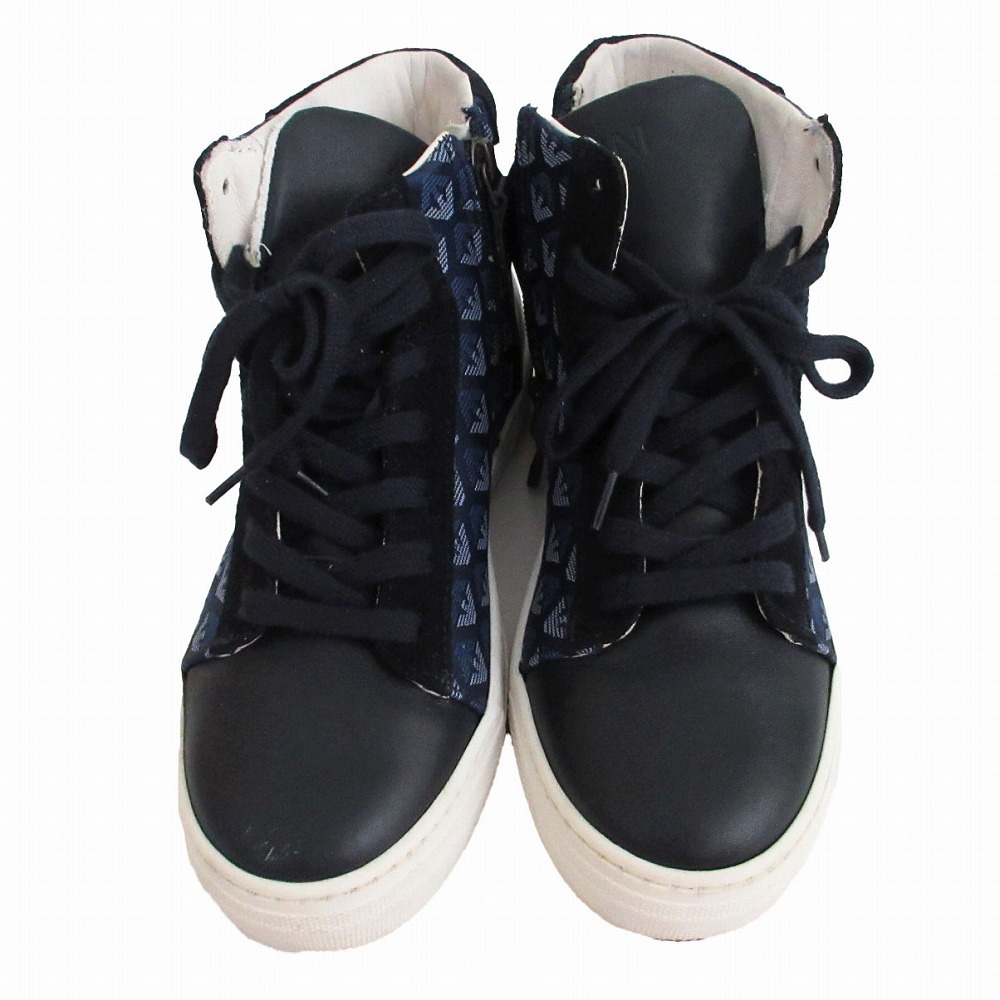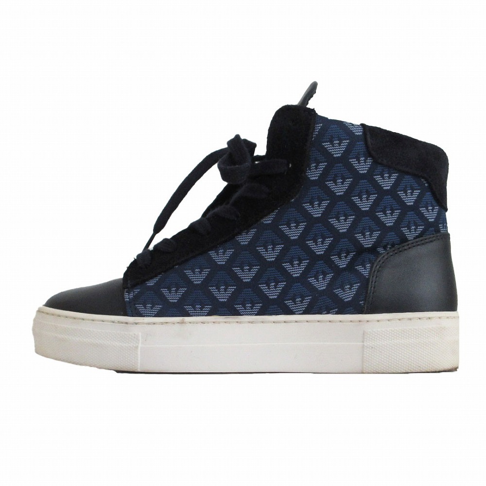 【ARMANI アルマーニ ロゴ総柄 テキスタイル サイドジップ ハイカットスニーカー ネイビー 405514 CC100 23cm レディース】 | |