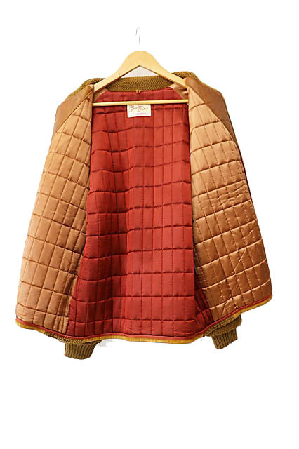 テンダーロイン TENDERLOIN サンプル品 T-WORK LONG JKT Q カウ レザー 牛革 ニット切替 中綿 ワーク ロング ジャケット ブルゾン M キャメル ☆AA★250820