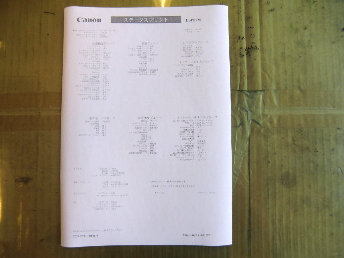 カセットトレイ、手差し印刷動作確認済み。 連続印刷動作確認済み。 自動両面印刷動作確認済み。 USB、LAN動作確認済み。 |