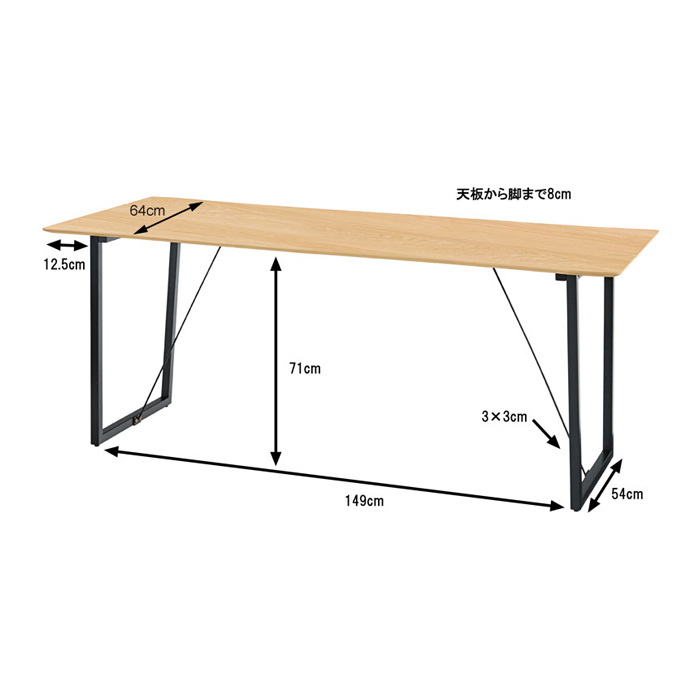 | 天板にちょっとしたデザインを施したダイニングテーブル。 スチール脚との組み合わせでおしゃれ感UP! |