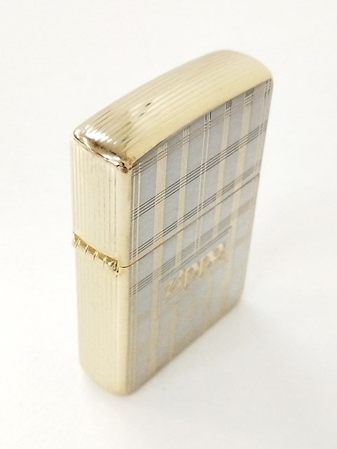 | ZIPPO ジッポー オイルライター ラインカットクロス 5面仕上 SILVER 10ミクロン シルバー×ゴールド ’93 |