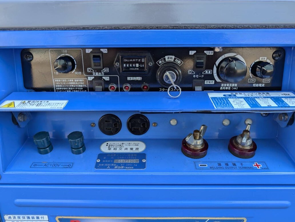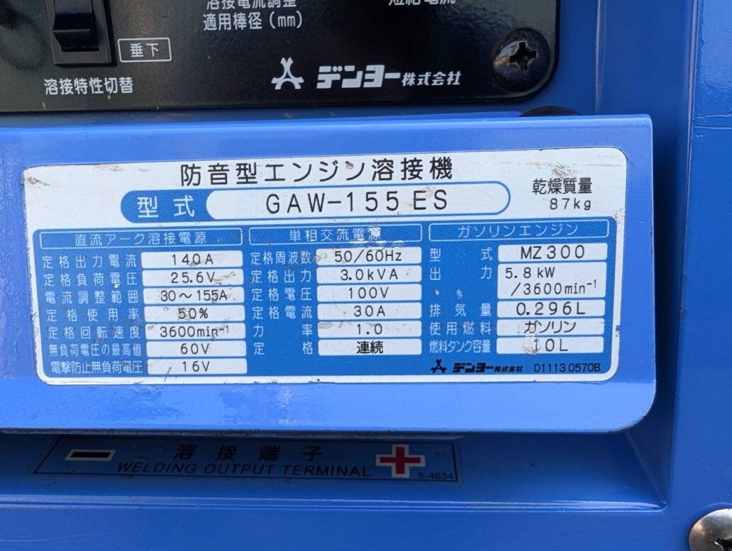 商品説明 | (即決)デンヨー・発電・溶接・ウエルダー・GAW-155ES・444時間・美品・アイドリングストップ・整備済 です。 型式:GAW-155ES(リコイル・セル併用) 自動アイドリングストップ機能付 444時間 ガソリン・4サイクル 50/60Hz(切り替え式) 乾燥重量 87Kg 適用溶接棒2.0~3.2ミリ 補助電源:100V・3.0KVA・30A キャブレター新品 エンジンオイル交換 バッテリー充電(MTX9-BS) 燃料ゲージ新品 エアーエレメント清掃 燃料コック、タンク清掃 分解・清掃・点検・調整 板金・塗装(デンヨー純正塗料) 動作OK(2.0~3.2ミリ溶接棒テスト済み、発電テスト済み) 全長687 全幅494 全高630 ※使用少ないので全体に綺麗で調子もいいですよ! ※オークションシステムにより落札者様の電話番号の表記がしなくなり、発送の際に電話番号が必要の為、 落札後、必ず取引ナビにて電話番号送って頂く様にお願いします。 |